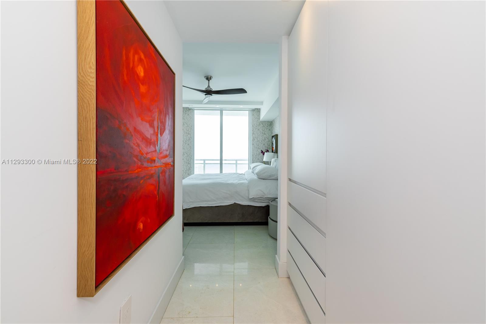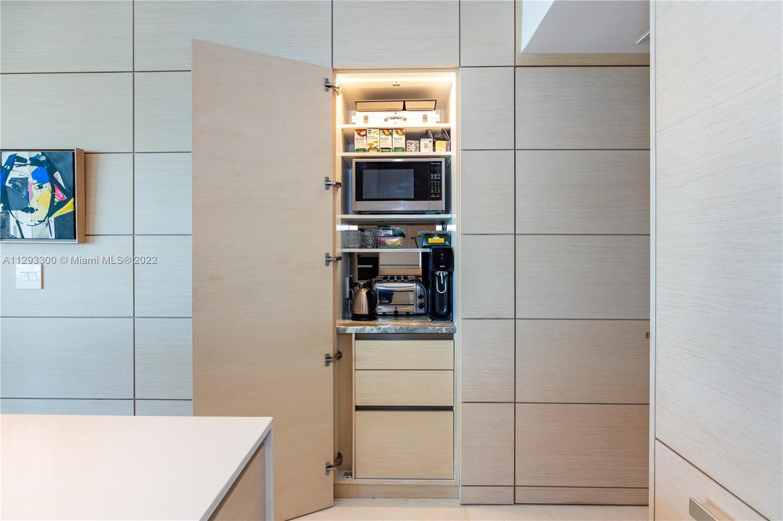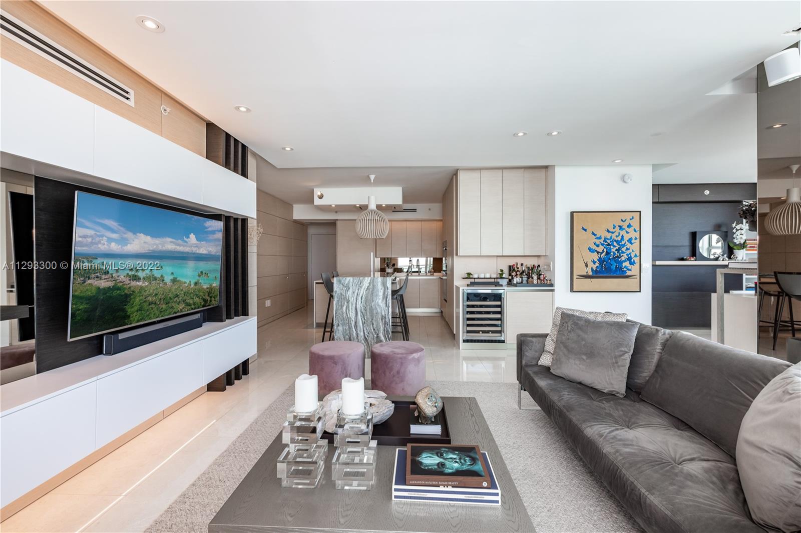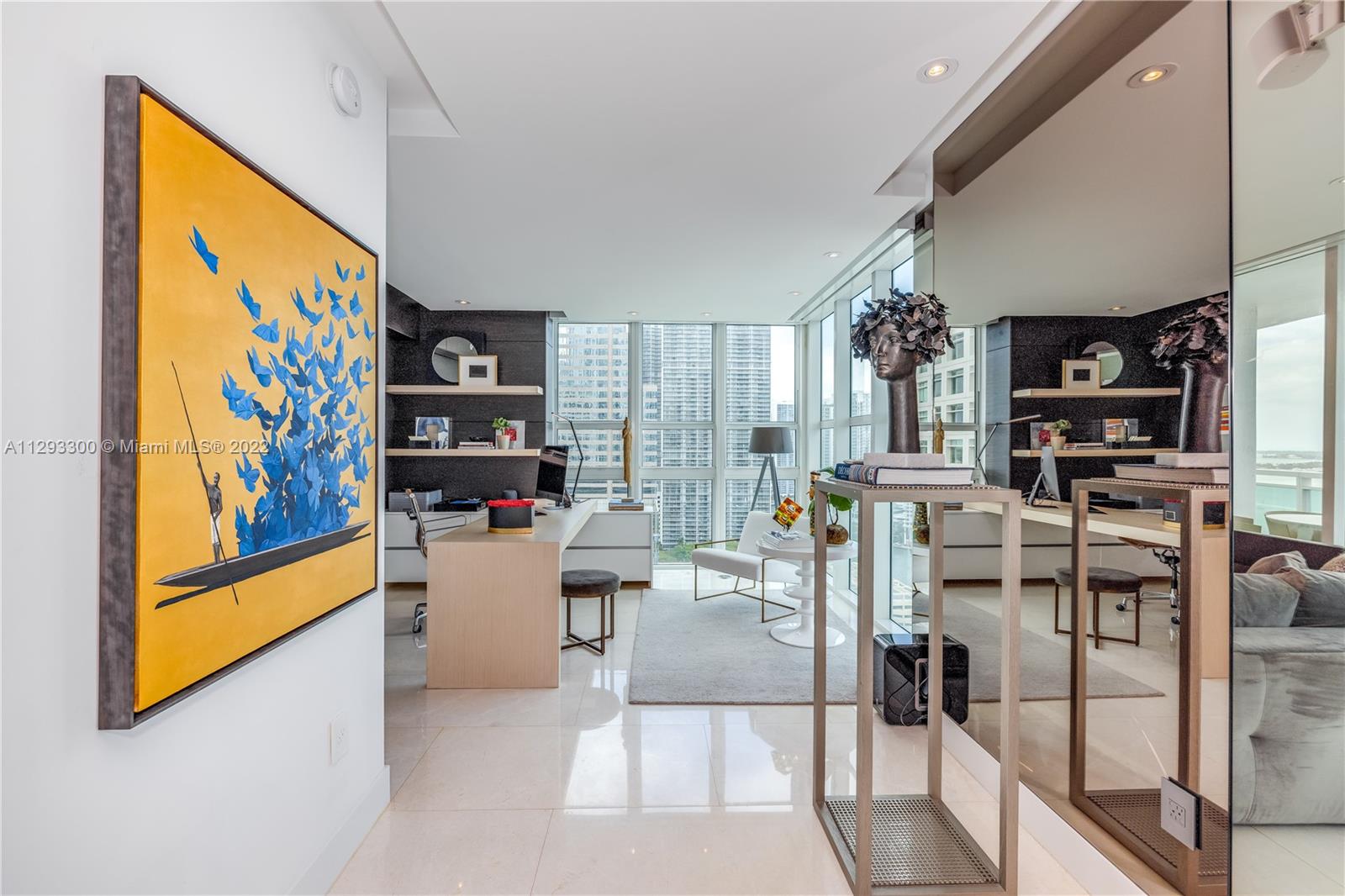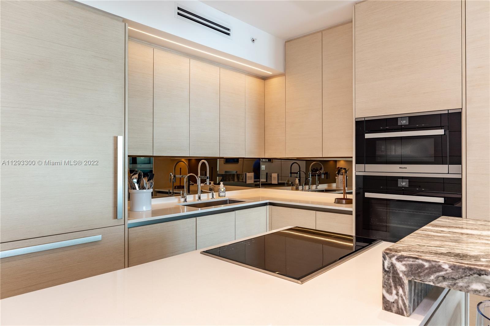 Spectacular panoramic views of Biscayne Bay. Designer remodeled and designer furnished - top-of-the-line appliances, marble floors throughout, European kitchen with built-in dining table, eletric shades & blinds. Second bedroom is used as an office with convenient Murphy bed. Enjoy coffee on your oversize terrace overlooking Key Biscayne, Brickell Key and Miami Beach. Amenties include gym, pool area, theater, party room, office center & valet parking. Centrally located to all Brickell has to offer. Walk everywhere on Brickell. Unit currently rented furnished for $6,500 a month until May 2023. Furniture is negotiable. Please use ShowingTime, text or call listing agent for showings.