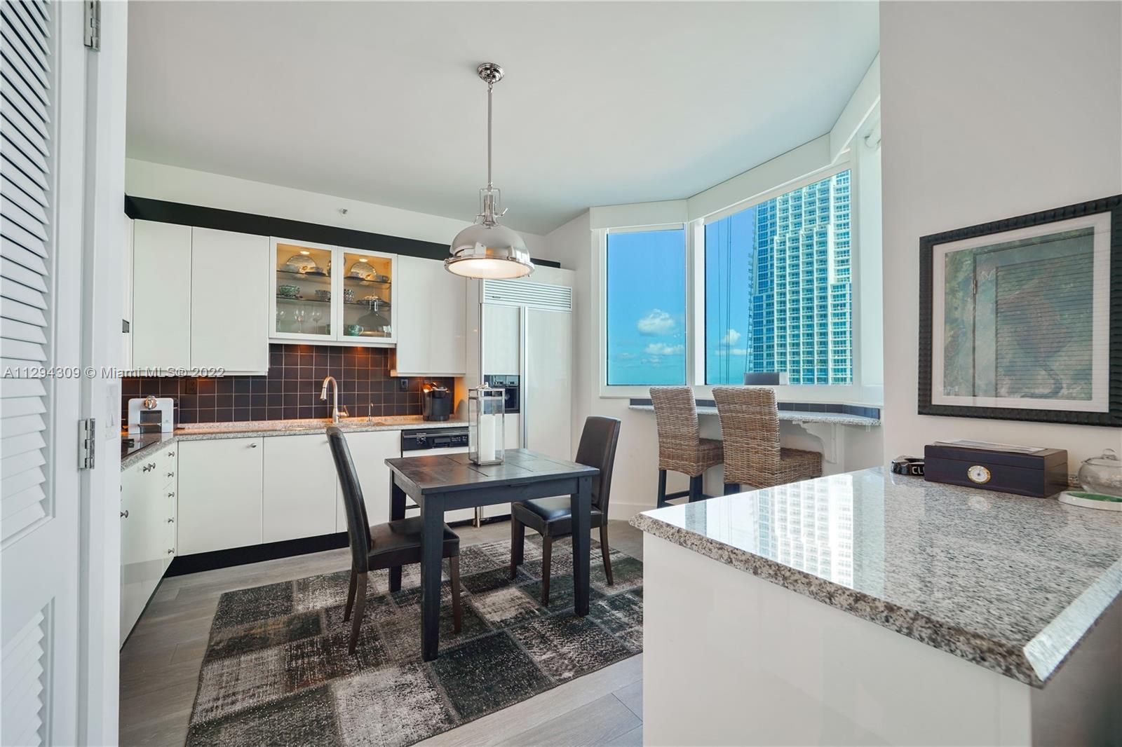 Spacious ocean view residence at the prestigious Portofino Towers. Enjoy stunning views of the Atlantic Ocean, beautiful sunrises every morning, and the lush tropical landscape of South of Fifth. This charming residence offers updated floors & hardware, eat-in kitchen overlooking the ocean, large master suite with a well appointed master bath including separate walk-in shower and jacuzzi tub, and ample closet space. Additionally is a large walk-in storage closet, powder room & private balcony. Walk to the beach, South Pointe Park, and best restaurants in the distinguished South of 5th neighborhood. Portofino Tower boasts a new lobby with 40' ceilings,modernized elevator cabs,brand new pool with cabanas,tennis courts,dog park, and soon to be completed new serenity garden and porte cochere.