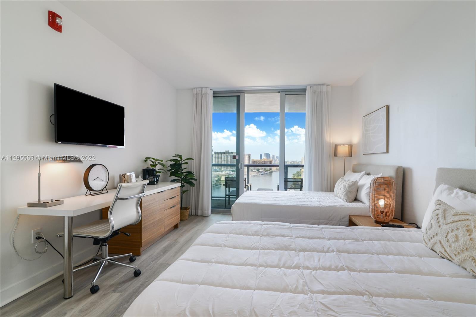 Airbnb Friendly, Furnished Turnkey Investment Opportunity! Rare No Rental Restrictions Condo. Featuring Kitchen W/SS Appliances, Living Space With A Couch & TV. Large Bedroom Suite W/Walk-In Closet & En-Suite Bath. Balcony Access From Living & Bedrooms with Floor to Ceiling Windows. Smart Floor Plan Allowing Rentals of Both Bedrooms or Separately as 2 Units. Second Bedroom W/2 Double Beds, Walk In Closet And Desk W/ Bath. Luxe Condo-Hotel W/World-Class Amenities, Rooftop & Waterfront Pool, Valet, Gym, Beach Access & More. Superb Location Walking Distance To Beach, Dining, Publix, Starbucks and More. Complimentary Shuttle To Private Beach Club. Intracoastal & City Views. Perfect To Stay In When on Vacation & STR When Not! Cash Flow & Own The Florida Beach Lifestyle. Easy To Show.