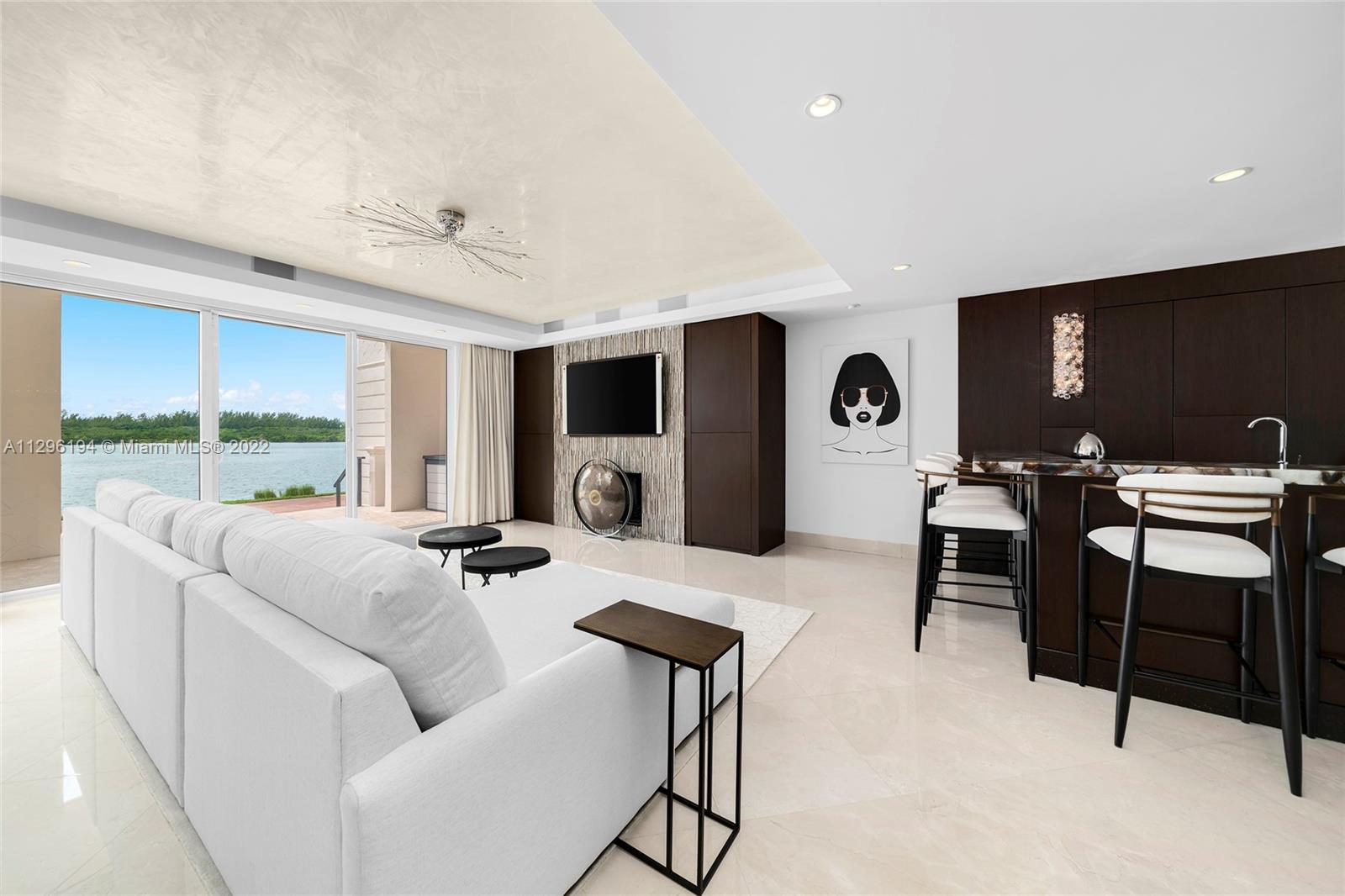 This immaculate ground floor Bayside Village unit features 3BR/3BA & 2,234 SF of custom designed interior space, a large front terrace & a second Bayside terrace w/seating areas that offers amazing views to the ocean, Virginia Key, Biscayne Bay & the Miami skyline. Marble floors throughout, spacious open living & dining room layout, fine designer finishes & millwork, custom wet bar with counter seating. Chef’s kitchen w/custom cabinetry & top-of-the-line Wolf & Sub-Zero appliances. Spacious bayside principal suite offers direct terrace access, custom closet spaces & principal bath with glass/marble shower & sunken spa tub. Amazing ground floor location next to the marina & beach club, step out to the walking path and experience the best Fisher Island has to offer. 5-star Fisher amenities.