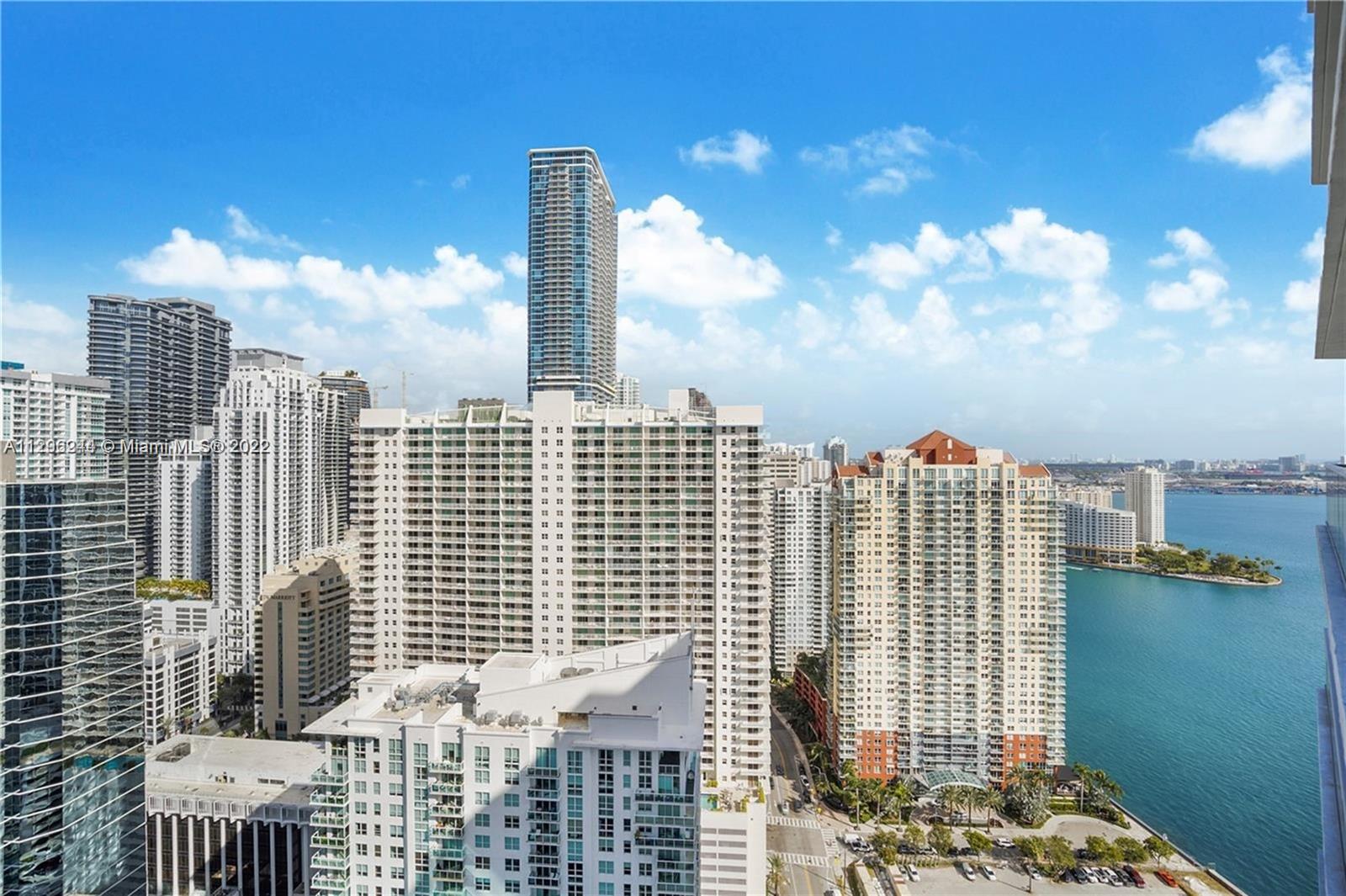 Beautiful and spectacular apartment, 2 bedrooms + DEN, 2 and a half baths,s. This unit has floor-to-ceiling windows with bay views and a huge balcony stretching all the way from the master bedroom to the living room. Huge walk-in closets in both rooms. Wood flooring, luxury finishes, fully equipped with top appliances, washer/dryer, and 1 Assigned parking space. Amenities to enjoy-2 pools, cabanas, BBQ area, club room, kids lounge, family areas, 24 hr concierge and security, valet, and welcoming lobby. Fully equipped state-of-the-art fitness center and private owners lounge with event bar and catering kitchen, theater, and spa. Located on Brickell Bay Dr. walking distance to restaurants, shops, and the heart of Brickell. Tennant occupied until January 14, 2023.