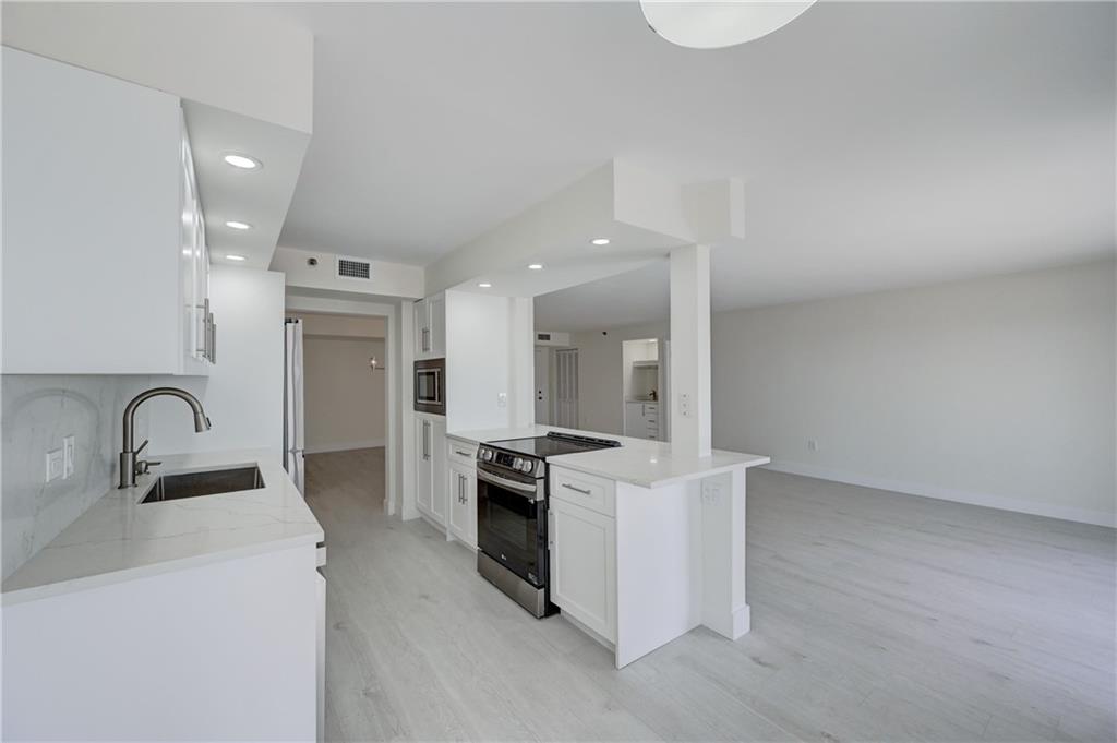 Beautiful Southern exposure newly renovated two bedroom two bathroom unit in The Summit Condominium. Spectacular views overlooking the ocean and intracoastal. Split en suite 2BR/2BA with custom walk in closets and 2 deeded parking spaces included. All new kitchen appliances, flooring, cabinetry, fixtures as well as new washer/dryer and new A/C unit. Amenities galore in this seaside paradise including tennis, heated pools, sauna, billiards, barbecue, bocce ball, pickleball, shuffleboard, fitness room, basketball, on site restaurant/café, bike storage, the list goes on..Close to airports, malls, restaurants.