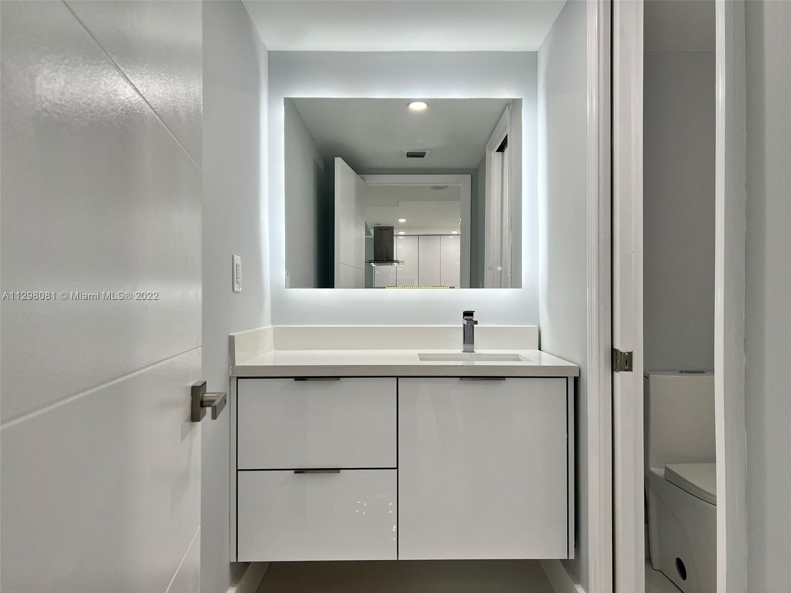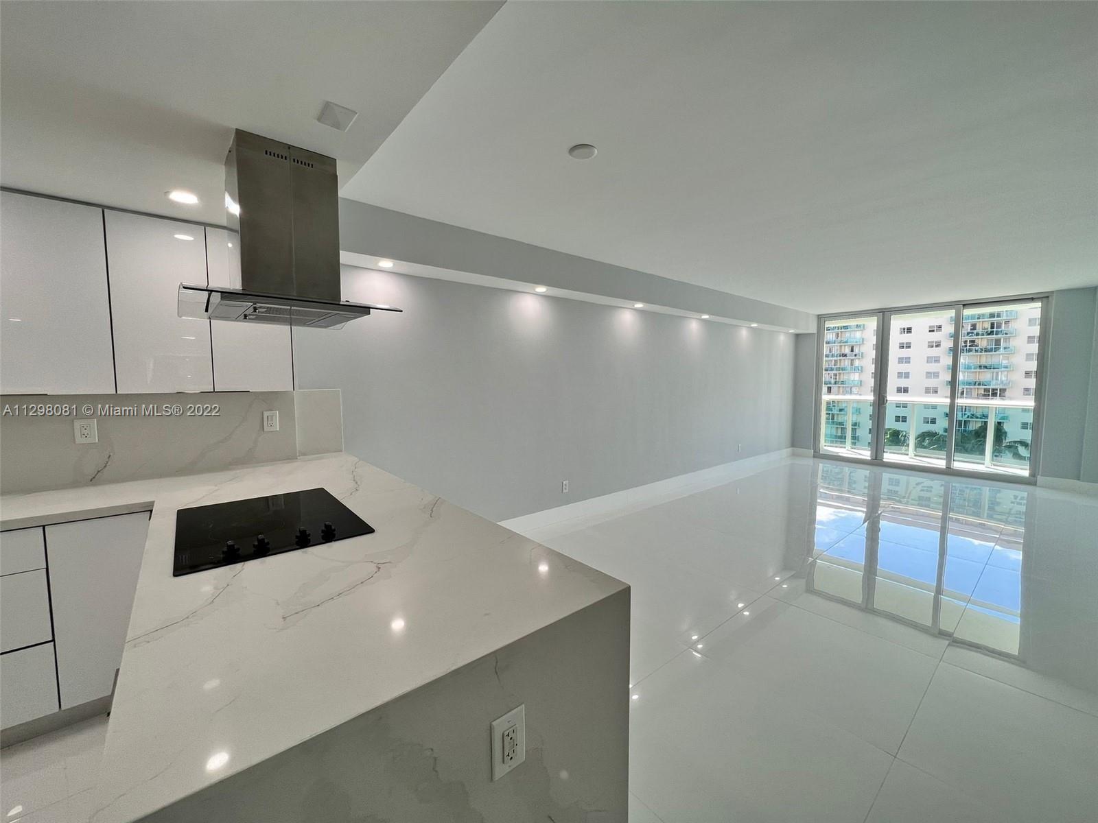 BRAND NEW CONTRUCTION!! Beautiful, completely renovated 2 bedroom 1 bathroom apartment. Alaskan white porcelain floors with marble shower, marble kitchen backsplash & marble L-shaped kitchen counter. New appliances throughout entire unit with hidden kitchen cabinet LED lighting & Living room Soffit lighting. Bathroom vanity mirror LED lighting with subdivision between vanity and shower in bathroom. 4 whole closets in entire apartment. (1 in each bedroom, 1 in bathroom, & 1 in entrance). Located in Sunny Isles with intercoastal views. For showings please call or text listing agents with 24 hr notice.