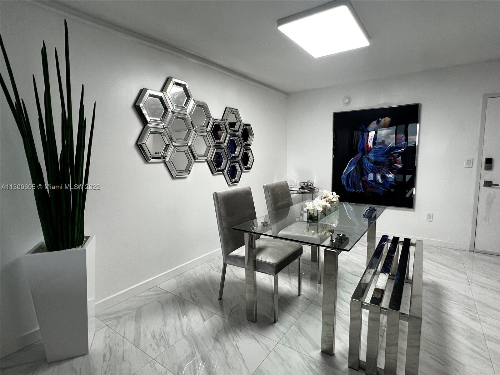 COMPLETELY REMODELED UNIT ON THE 6TH FLOOR OF A BOUTIQUE BUILDING. ALL MODERN FINISHES, MODERN APPLIANCES, FURNITURE, LAMPS, ETC... BIG MASTER BEDROOM WITH ENSUITE BATHROOM WITH A SHOWER AND A WALK-IN CLOSET WITH A CUSTOM-BUILT VANITY. THE SECOND ROOM HAS BEEN USED AS AN OFFICE SPACE BUT CAN BE USED AS A BEDROOM. THE UNIT IS BEING SOLD WITH ALL THE FURNITURE. THE UNIT HAS AN ASSIGNED STORAGE SPACE. BRAND NEW ELECTRICAL WATER HEATER INSTALLED. THE ENTIRE HOME IS SMART CONTROLLED, AND YOU HAVE THE OPTION TO USE GOOGLE, ALEXA, OR ANY OTHER AUTOMATED SYSTEM. THE BALCONY IS TILED AND HAS A DOGGY DOOR. ALL WINDOWS ARE IMPACT WINDOWS. 100 METERS FROM THE HOLLYWOOD BEACH BROADWALK. LOWEST HOA ON THE BEACH. SHOWING ONLY WITH PROOF OF FUNDS OR PRE-APPROVAL.