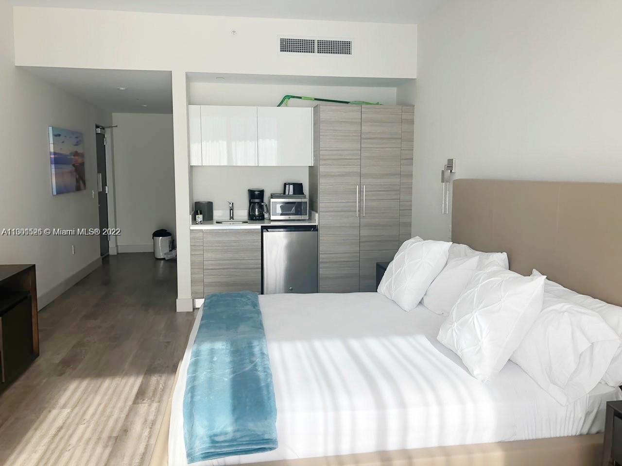 Beautiful modern studio condo walking distance from beach. Fully furnished, decorated, and move-in ready. Hotel rental program available, great for investors, when not in use, you can use it yourself. Turn-key investment!