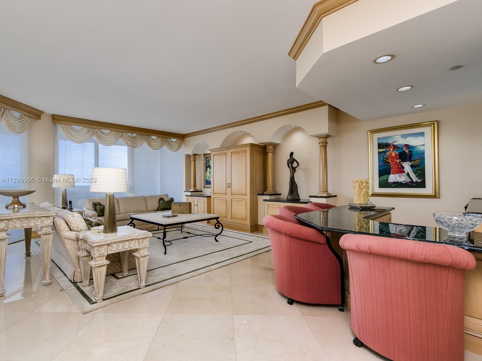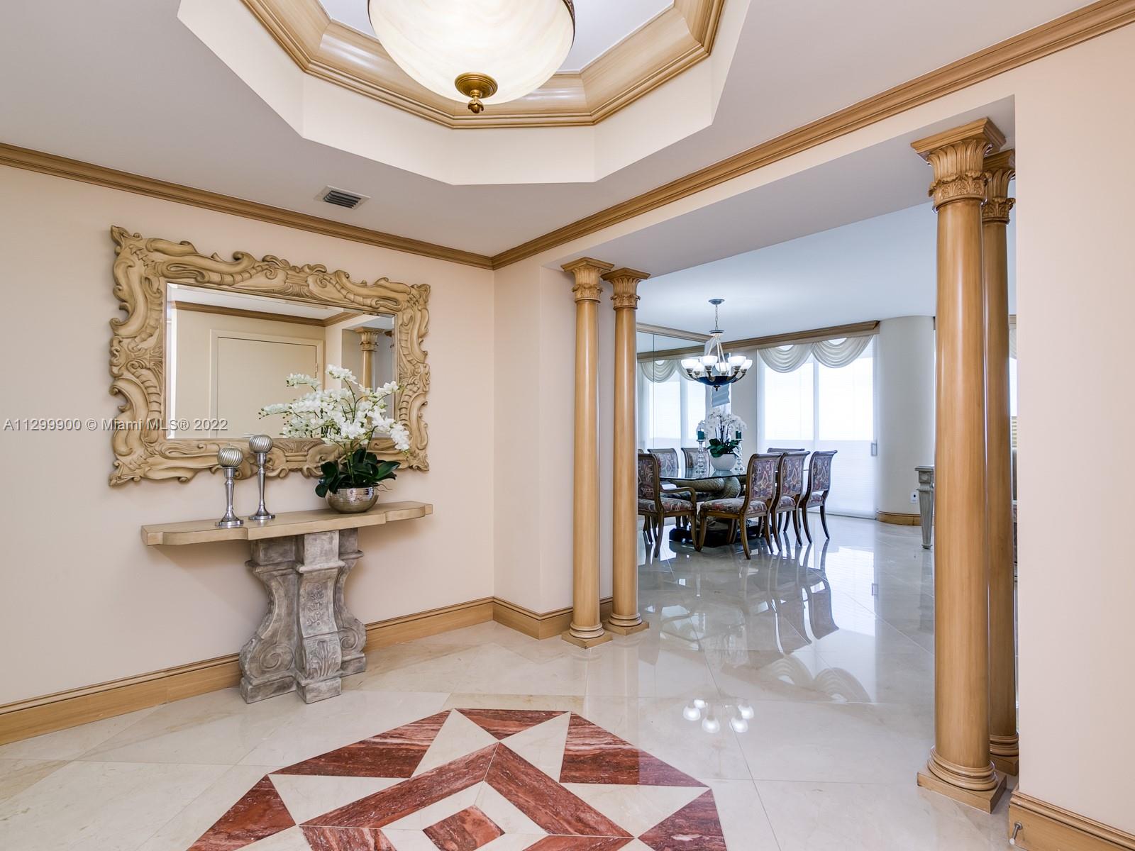 DIRECT OCEAN, INTRACOASTAL & MARINA VIEWS FROM THIS SOPHISTICATED RESIDENCE. FULL EAST TO WEST EXPOSURES WITH ALMOST 3000 SQUARE FEET OF LUXURY. THREE FULL BEDROOMS PLUS OFFICE WHICH CAN BE MADE INTO A FOURTH BEDROOM. LARGE MARBLE FLOORING COMPLIMENT THE QUALITY WOOD WORK, CROWN MOLDING'S & BUILT INS THROUGHOUT. GOURMET EAT IN KITCHEN HAS THERMADOR APPLIANCES, GRANITE SURFACES, LARGE PANTRY & ELECTRIC WINDOW TREATMENTS. FAMILY SIZE LIVING & DINING ROOM COMPLETE WITH CUSTOM MADE BAR FOR ENTERTAINING. TWO LARGE GUEST SUITES HAVE DIRECT ACCESS TO THE GLASS BALCONY FOR OPTIMAL SUNSET VIEWS. GUEST BATH HAS SEPARATE SOAKING TUB & SHOWER. THE PRIMARY BEDROOM GIVES YOU THE FEEL OF A 5 STAR HOTEL. 2 ORGANIZED WALK IN CLOSETS PLUS TWO FULL SPA LIKE BATHROOMS. THE POINT IS TRUE RESORT STYLE LIVING.