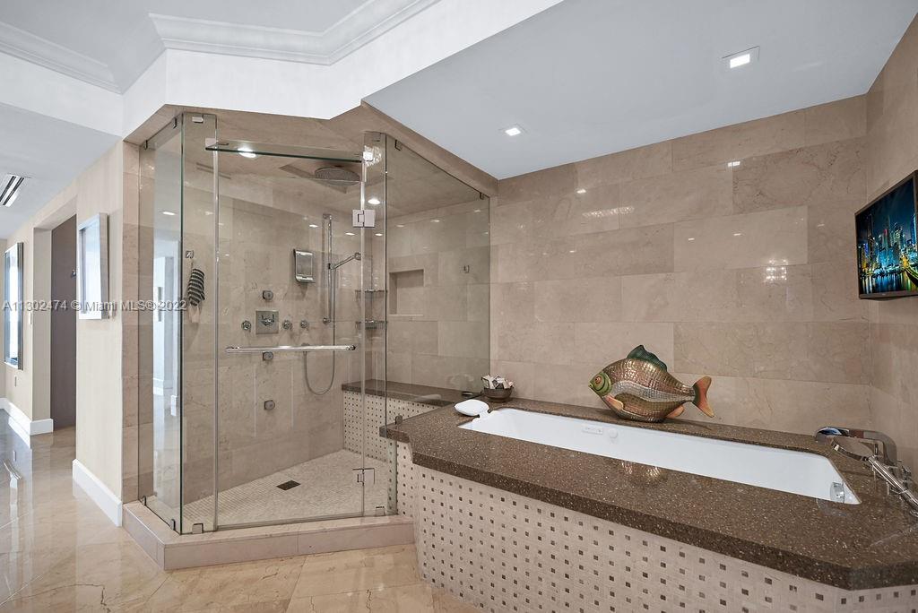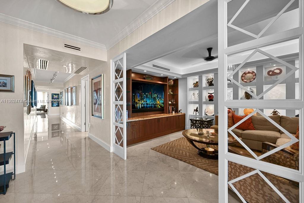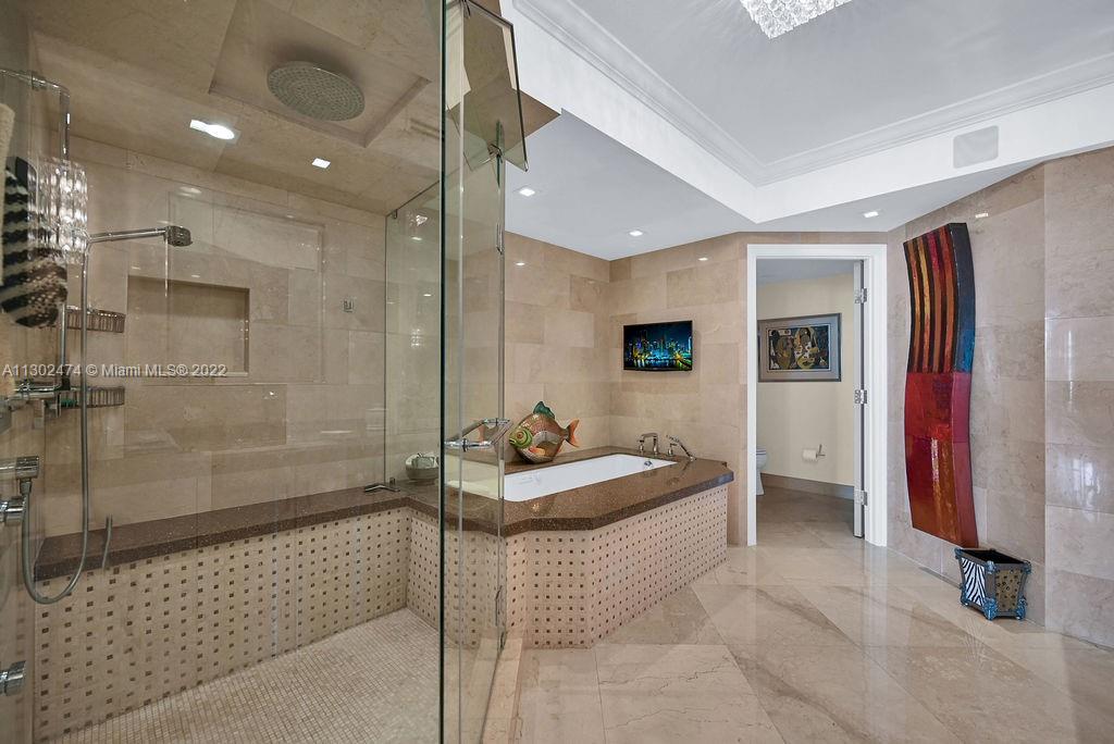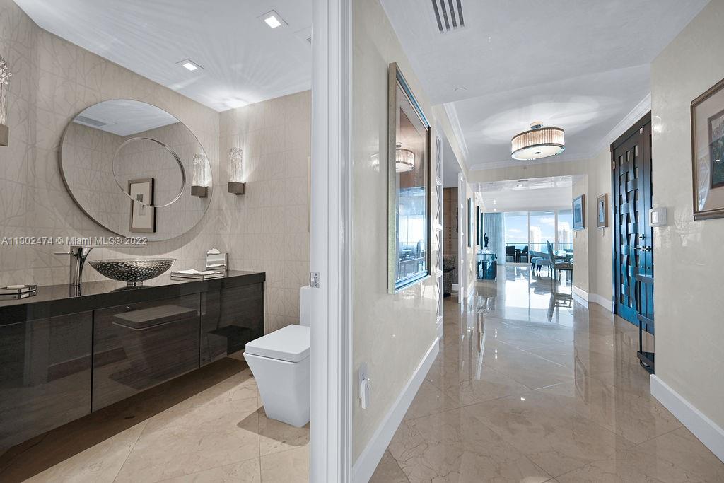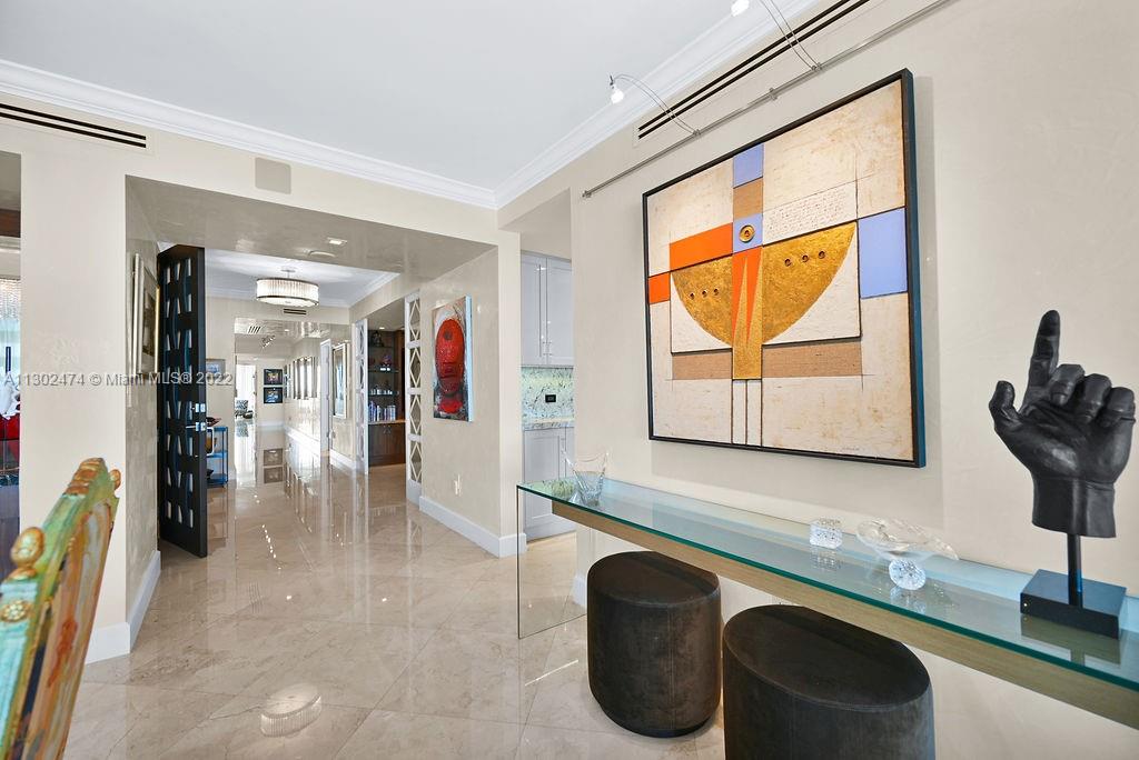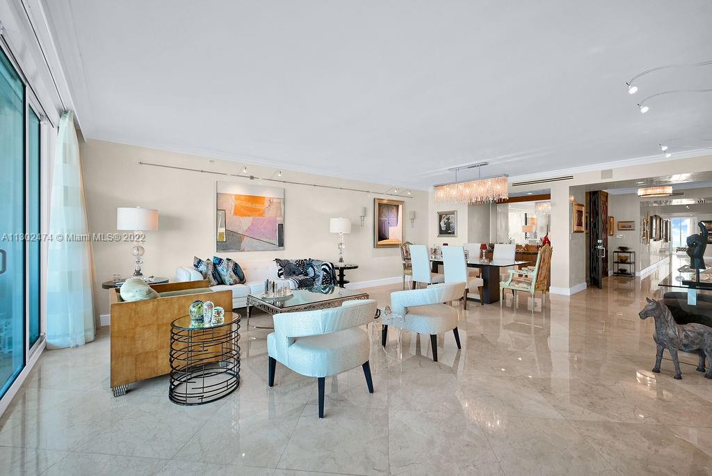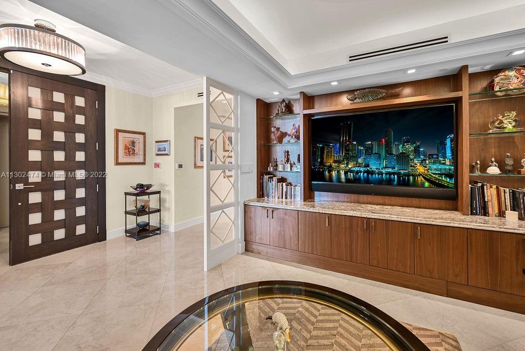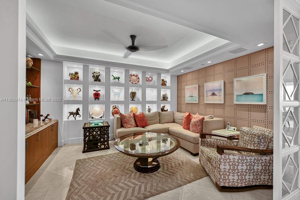 This luxurious one-of-a-kind home boasts Ocean and Intercostal views from every room. Professionally designed and decorated by the legendary, award-winning designer Nick Luaces. A private elevator welcomes you to the formal foyer. 3,298sf of completely remodeled crafted design with the finest bespoke details and high-end finishes. With 3 bedrooms, 3.5 baths, and media room, which can easily be converted into a 4th bedroom. Marble floors throughout, custom walk-in closets, Italian kitchen with Miele appliances. The Peninsula’s 5-star amenities, include 2 state of the art fitness centers, 2 pools, 3 tennis courts, Spa, children’s room, social room, cafe. Gated entry, 24-hour concierge, valet parking, and dog-walk areas.