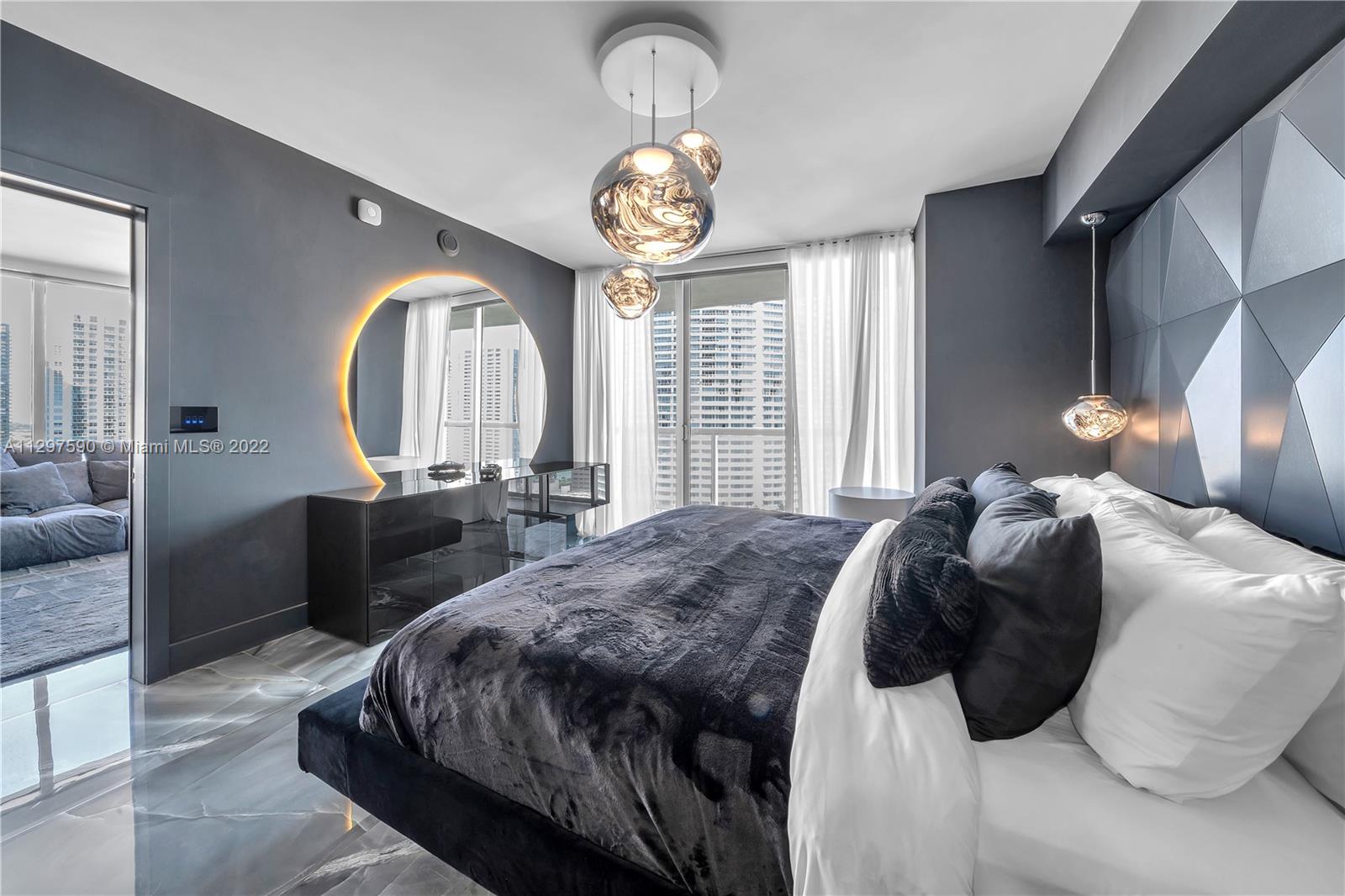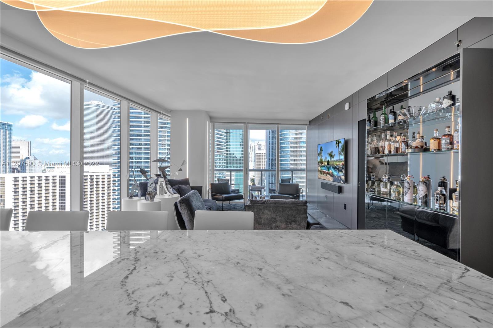 Masterpiece at the Icon Brickell Tower 1. State of the art finishes in this completely remodel residence in the prestigious Brickell Ave. this stunning 2 bed 2 baths is a portraits of modern and luxurious Brickell living offers a functional open concept with elegant kitchen marble top with Sub-Zero refrigerator, Bosch oven combo, porcelain floors Bang & Olufsen sound system. All Furniture and electronics included in sale. C Electric blinds and shades. Enjoy views of Downtown Miami, the Miami River, Biscayne Bay and the Miami Beach skyline from your private balcony Icon Tower offers Pool and Spa Gym with classes Valet, Concierge and 2 5 star restaurant . Walk to financial district, restaurant, Brickell City Center amenities include spa, gym Concierge, pool party room, conf room.