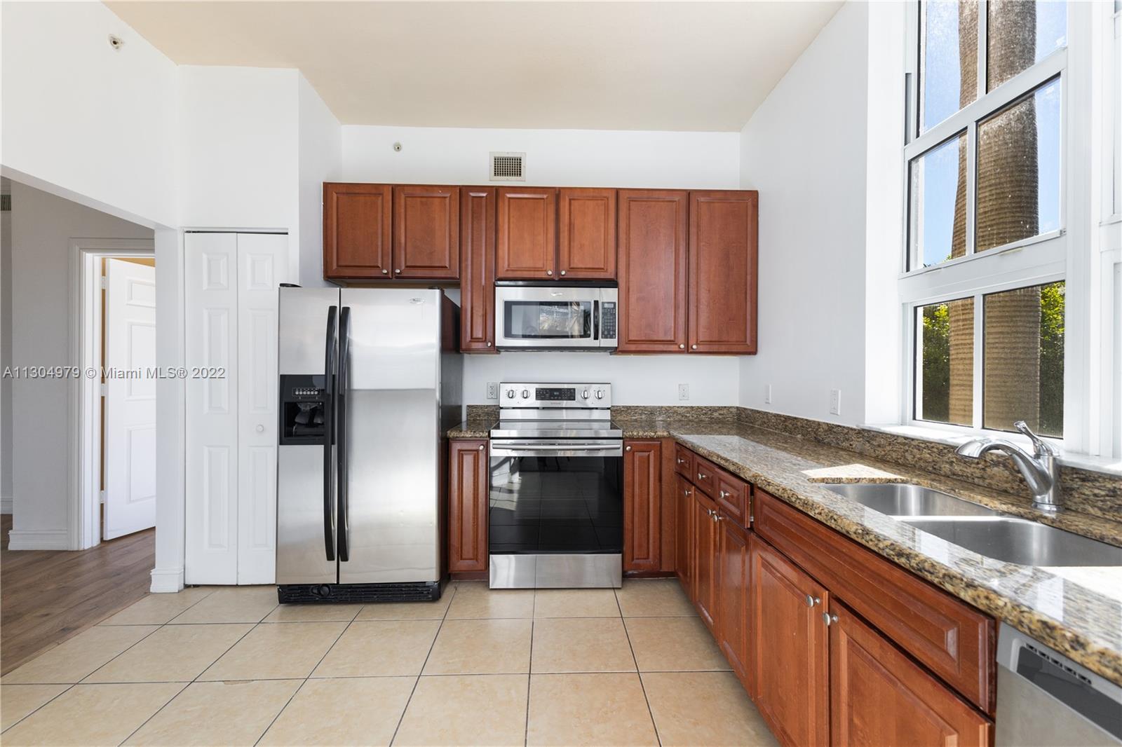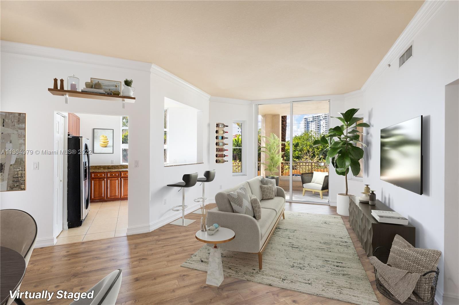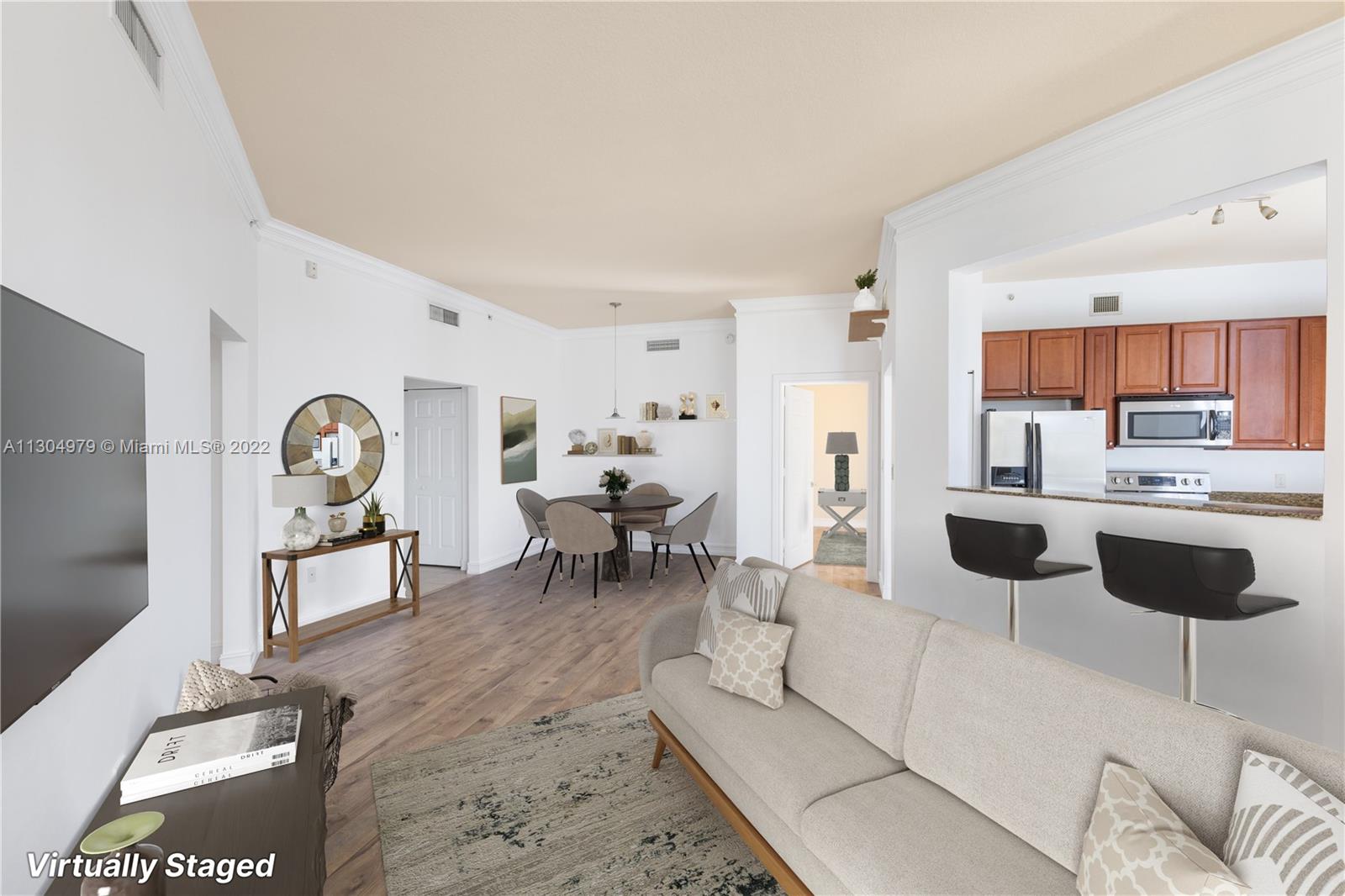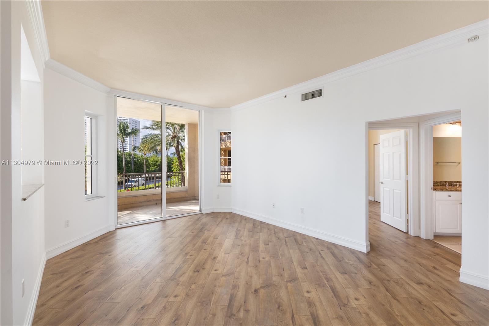 Spacious 2 bedrooms, 2 baths unit at the mediterranean style condo Alaqua, located in the heart of Aventura. The unit features an open floor plan with split bedrooms, 10ft high ceilings and lots of natural light. Enjoy the large balcony with access from living room and bedroom, kitchen with granite countertops and stainless steel appliances, washer and dryer in the unit, and 2 assigned parking spaces. The condo includes a pool, spa, club/billiard room, conference room, gym overlooking the canal and a boardwalk by the canal for walking and relaxing. Maintenance includes cable and internet. Click on "Virtual Tour" for video walkthrough.