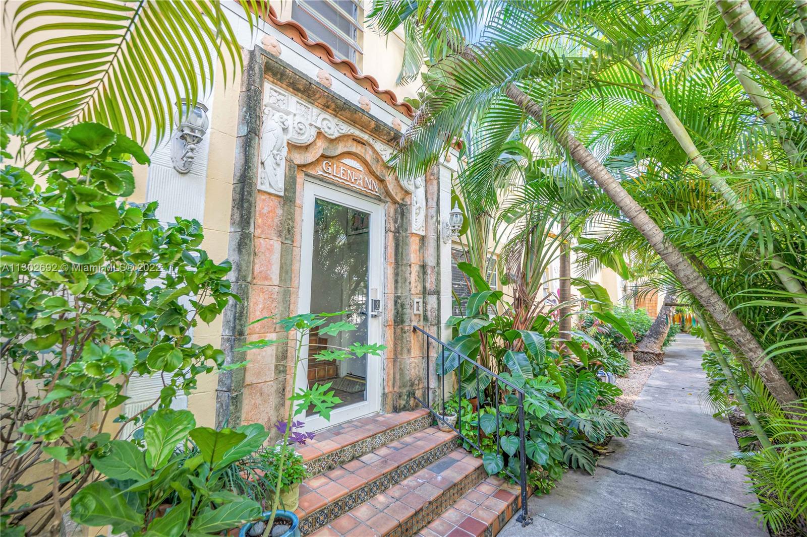 Splendid Art Deco condo in the heart of SoBe. Surrounded by a tropical garden, this renovated 1st-floor corner unit features lots of natural light w/ exposure on 3 sides. Charming details abound including deco molding, original starburst ceiling medallion & beautiful oak wood floors. The eat-in kitchen has been updated w/ granite counter, gas stove & large pantry. Smart home setup w/ Nest, Ring alarm, keyless entry & LG washer/dryer. Hurricane impact windows. ‘The Glen Ann’ is a boutique building designed by famed architect Ralph Murray Dixon & was formerly featured on the Art Deco tour. Enjoy the delightful, shared patio area under the shade of mature foliage. Private, gated entrance. Only 8 units in the building. Prime location walking distance to Flamingo Park, Whole Foods & the beach!