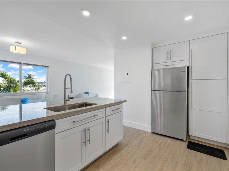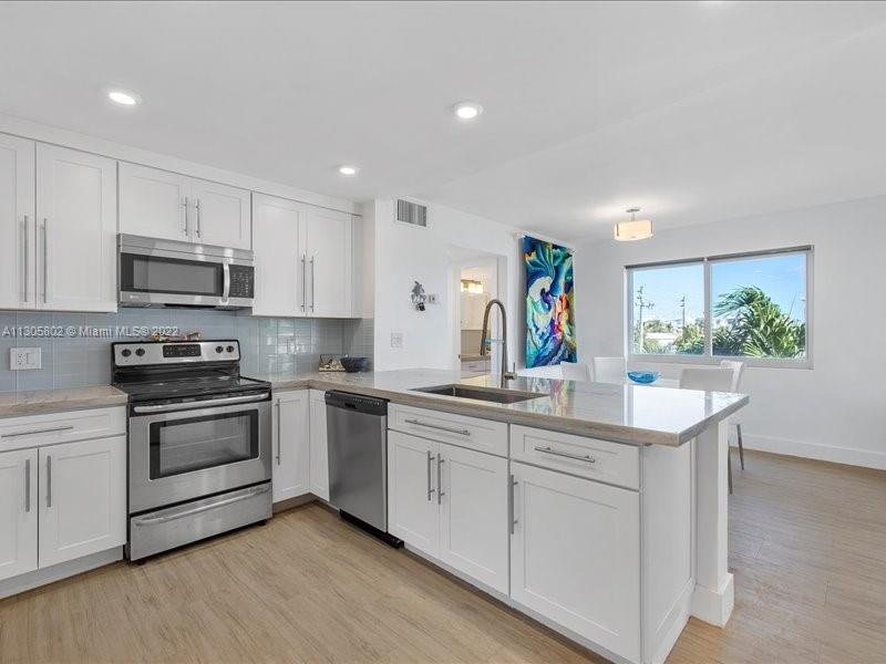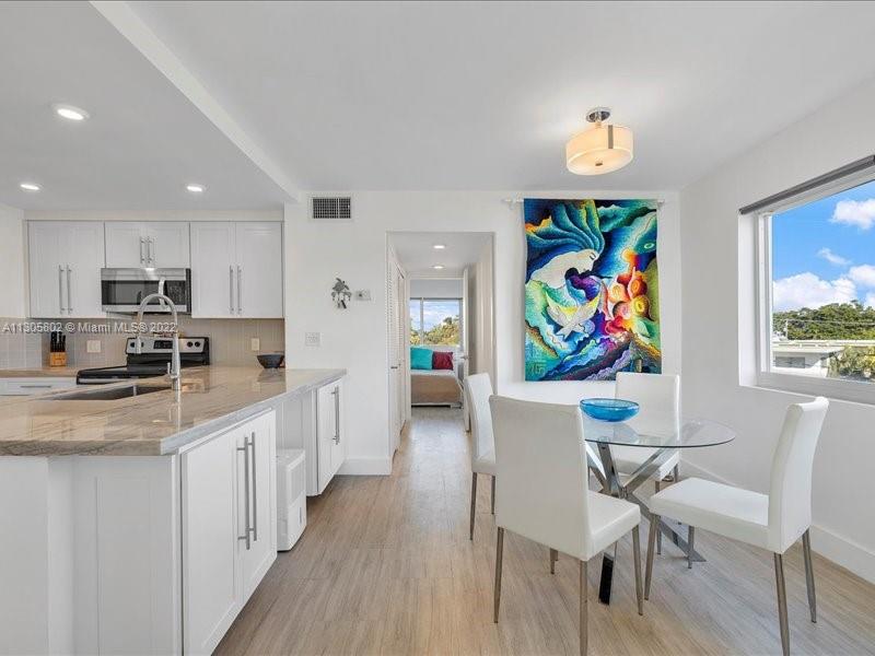 Amazing location in a growing region of Miami Beach, close to shops, restaurants and bars. This 1bed and 1.5 bath has it all! Fully updated. Direct canal views! Fantastic East and West views from unit. Newer A/C handler and condenser replaced, tankless water heater, Stainless steel appliances, Hurricane Impact windows and doors (2020, LoE insulated tinted windows to reduce heat and UV rays) other updates completed in 2016. In 2019, full unit renovation; New kitchen; Solid wood cabinetry and bath w/soft close drawers. New granite counter tops and tile backsplash, including Led lights under cabinet. Recessed lights. Blackout shades. Modern tile flooring throughout the unit and much more. Secured covered parking. Washer and dryer hook up in unit! Cash Only.