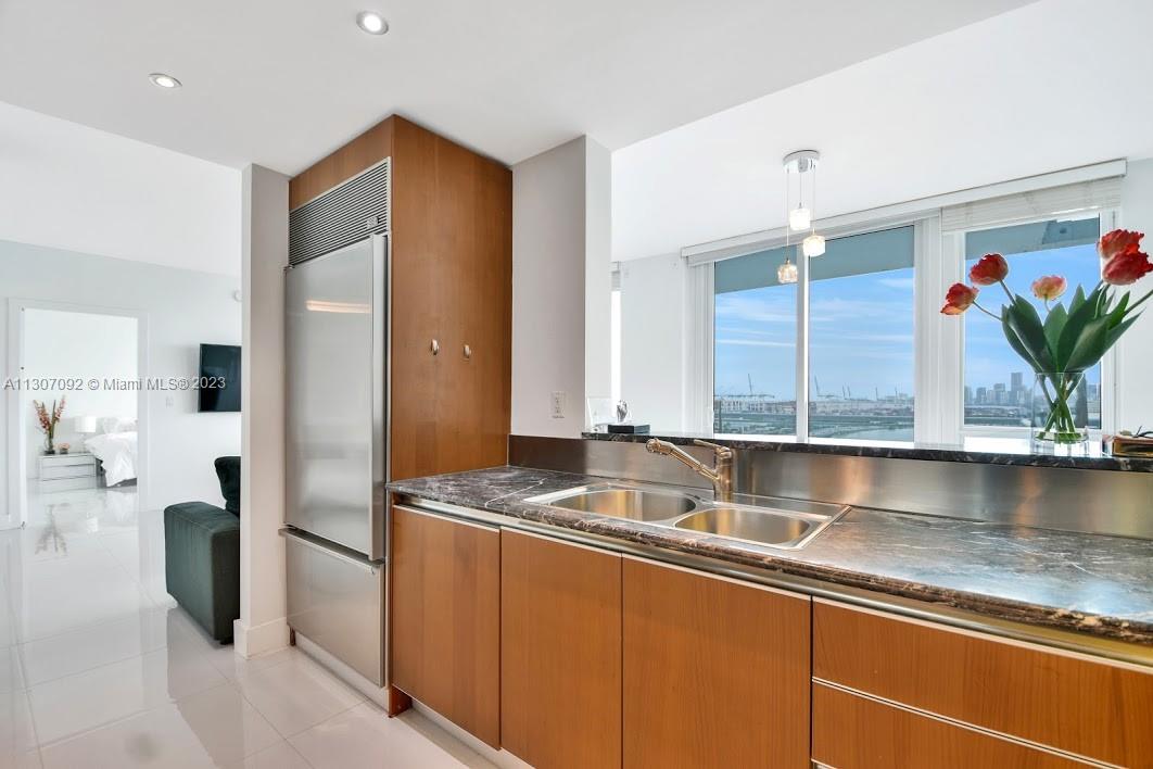 Impeccable turnkey unit with Modani furniture. Bedroom + enclosed den can be used as 2nd bedroom or office. This unit has spectacular unobstructed sunset views facing DWTN Miami skyline from the living area and master bedroom for unique sunset memories. BB 1503 features a beautiful new white porcelain floor, floor-to-ceiling windows soak the condo with natural light. Ideally located on pedestrian-friendly South Beach location with new park.