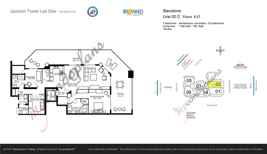 Spectacular views from this sub-penthouse home in the prestigious Jackson Tower one block to the beach and Brand new, Las Olas Marina. Buy now, and reserve your slip! 3 bedrooms and 2.5 baths with 10ft ceilings and floor-to-ceiling windows. The 1150 sq ft wraparound terrace provides views of the Ocean and Intracoastal. Semi-private elevator. This unit includes many custom features and upgrades including Lutron lighting and speaker system, custom built-ins, new impact doors throughout, and brand new A/C with 5 yr warranty. The living room flows through to an outdoor entertainment area and outdoor kitchen. Jackson Tower offers a 24-hour concierge, Theater, Club Room, Health Spa, Fitness center, and rooftop pool. All reasonable offers will be considered.