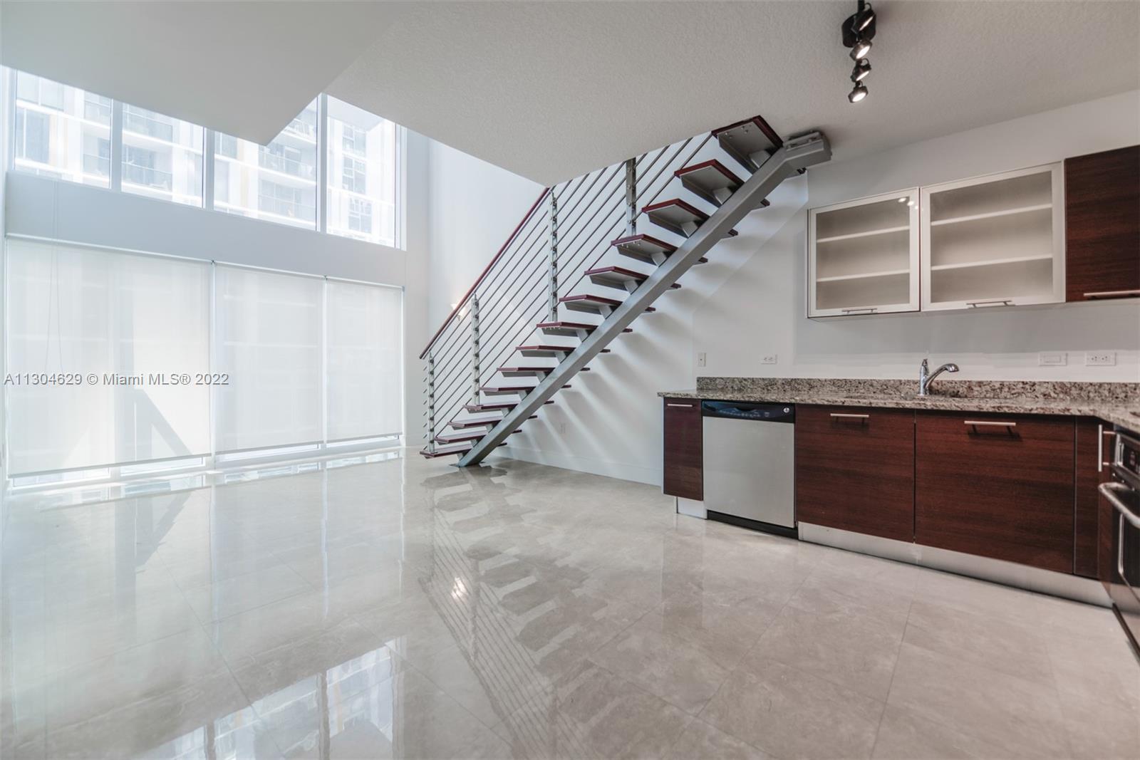 Amazing two story loft condo with city & river views. Spacious & very bright, 1 Bedroom, & 1.5 baths. Large open master suite upstairs with huge walking closet & master bath with double vanity, shower/jacuzzi tub, & washer/dryer. Plenty of room downstairs, 1/2 guest bathroom on entry level with open kitchen & living space. Tiled throughout & blacks outs from floor to ceiling. One assigned parking space. Valet parking for guests. State of the art amenities, heated pool, fitness center, SPA, 24 Hour Security, among others. Next to metro mover station, Brickell City Center, restaurants, shops & night life.