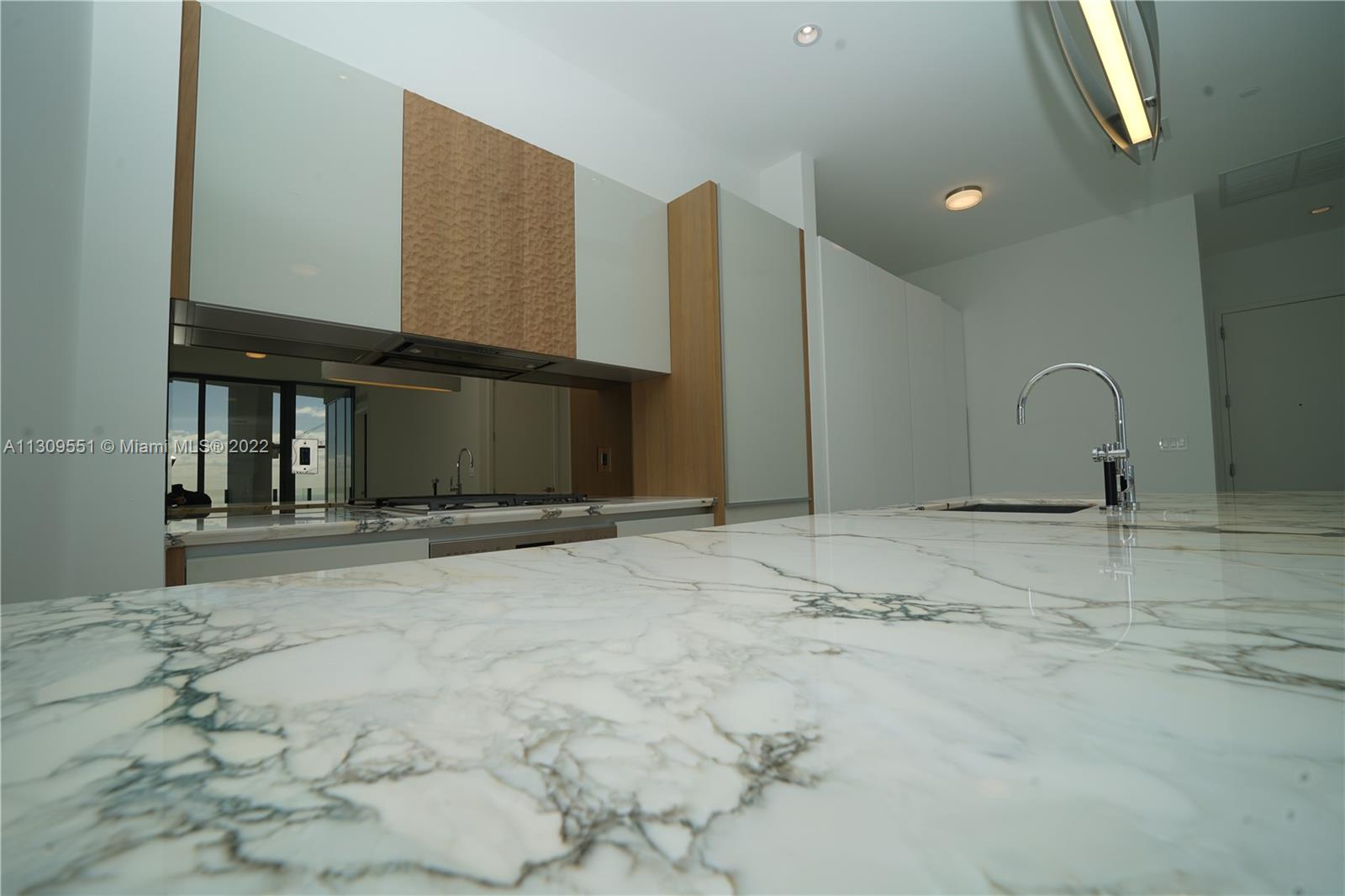 Designed by Oma and Rem Koolhaas One Park Grove offering a Spectacular apartment with and incredible views of Biscayne Bay, Coconut Grove marina and the city, from this corner unit with spacious floor-plan. The kitchen designed by William Sofeld, custom Italian glass cabinetry whit wood hewn island, Paonazzo marble countertops, Stainless steel under-mount sink, Bronze mirror backsplash, Sub-Zero and Wolf appliances, marble floor, Expansive balconies invite you to enjoy Miami's best views. Roof top terrace privately for its exclusive homeowners along with kids room with a nanny, a private Michael Schwartz restaurant, a resort style pool, a private spa and a private screening room/cinema. One Park Grove offers one of the most comprehensive indoor and outdoor living experiences in Miami.