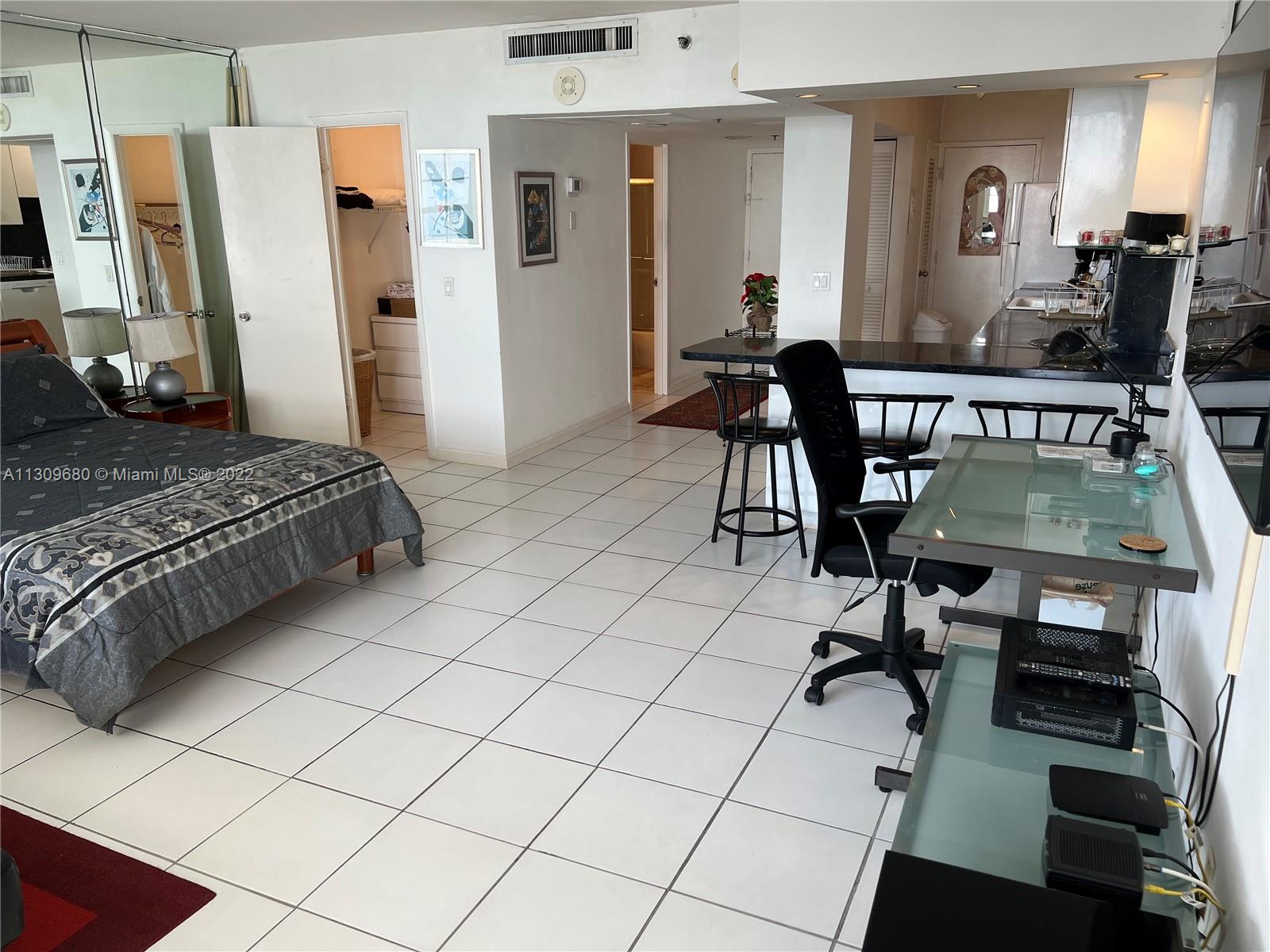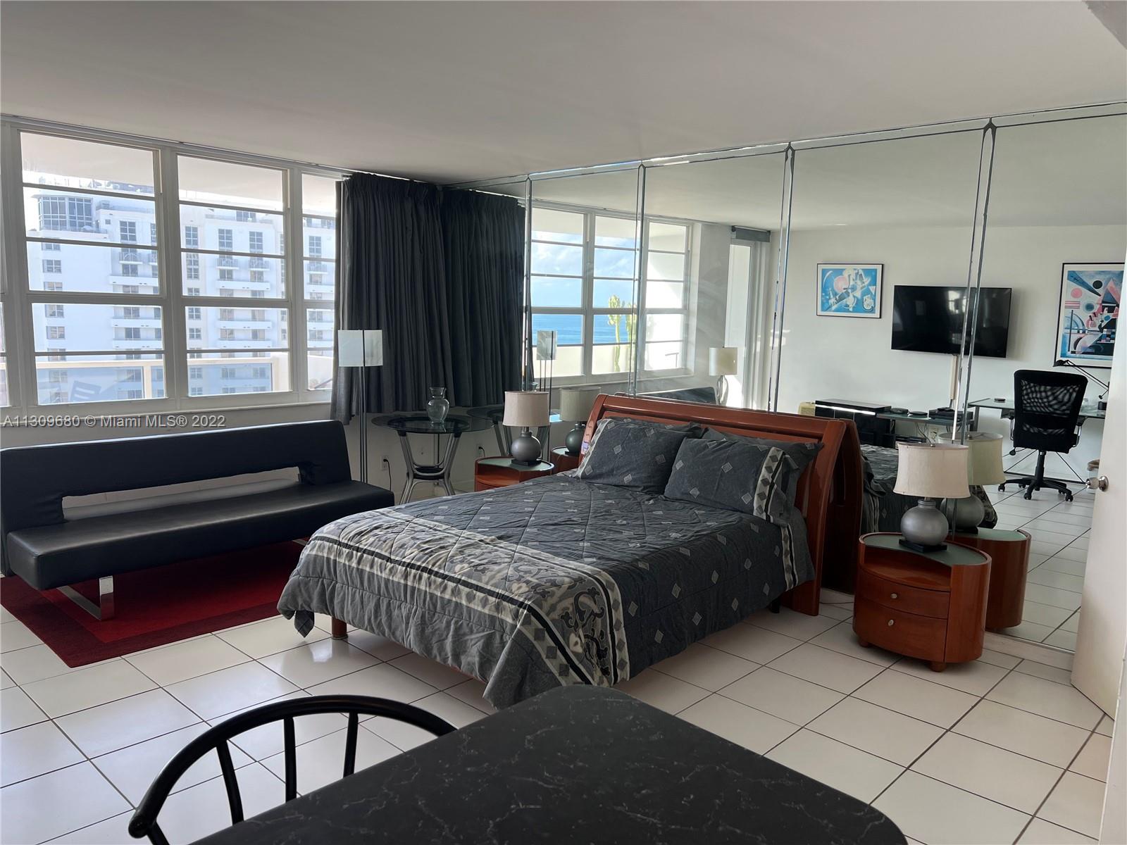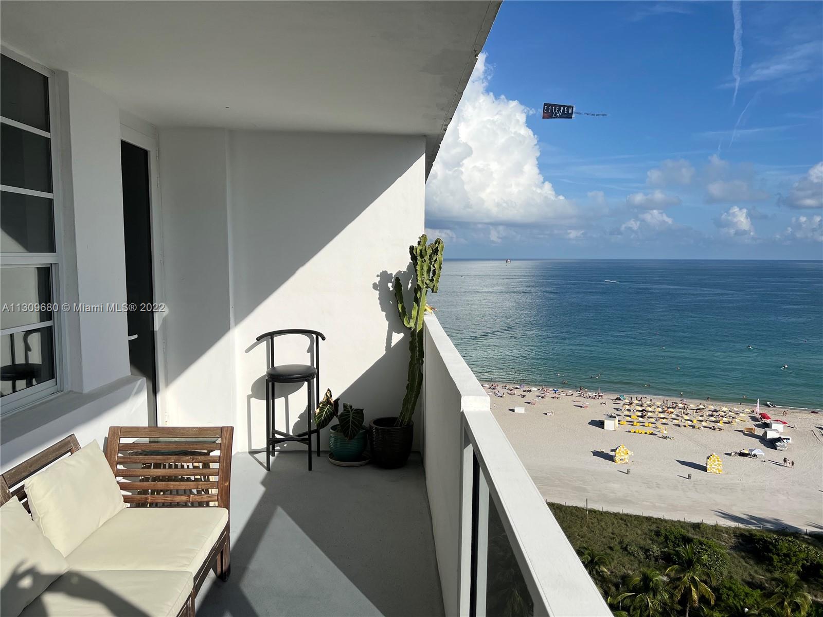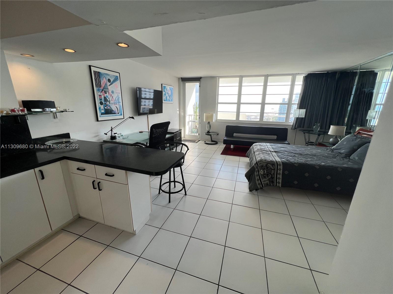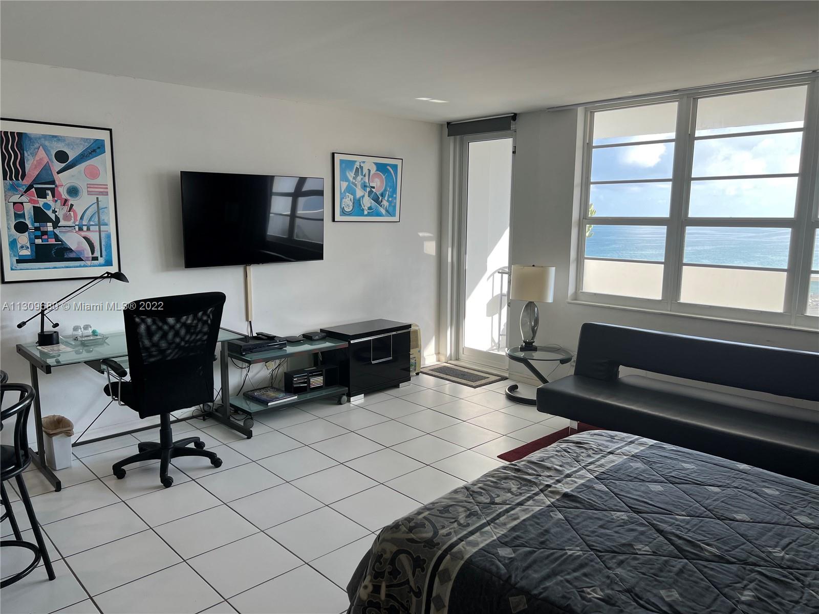 Attention home buyers, incredible opportunity. Ocean front building with direct beach access. Private balcony with stunning views. Not a lot of units become available on the quiet south side of the building. This will not last. Spacious, bright and sunny studio, white ceramic floors throughout, white cabinets and appliances. Shower Tub combination. Walk-in Closet, custom mirrors. HOA includes: water, Central A/C, internet, digital cable & reserves. Renovated lobby, gym, elevators, high impact windows, laundry room, game room, valet parking, mini market. The building is in the process of recertification. Location is unbeatable, walk to shops, restaurants, entertainment and sanctuaries. Life is better by the sea. This is an urban space with resort flair. Call now for more information.