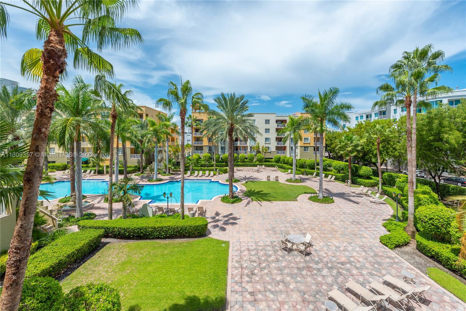 Lovely 2 bedroom, 2 bathroom condo in the desirable SOFI neighborhood. Located on the second floor, overlooking the beautiful Mediterranean-style pool and fountains with attractive landscaping. Open floor plan with large balcony, new A/C unit and 1 covered parking space. Master bedroom features large walk-in closet and spacious master bathroom glass shower and jacuzzi. The Courts offers 24hr security, 2 pools, gym and a premium location.