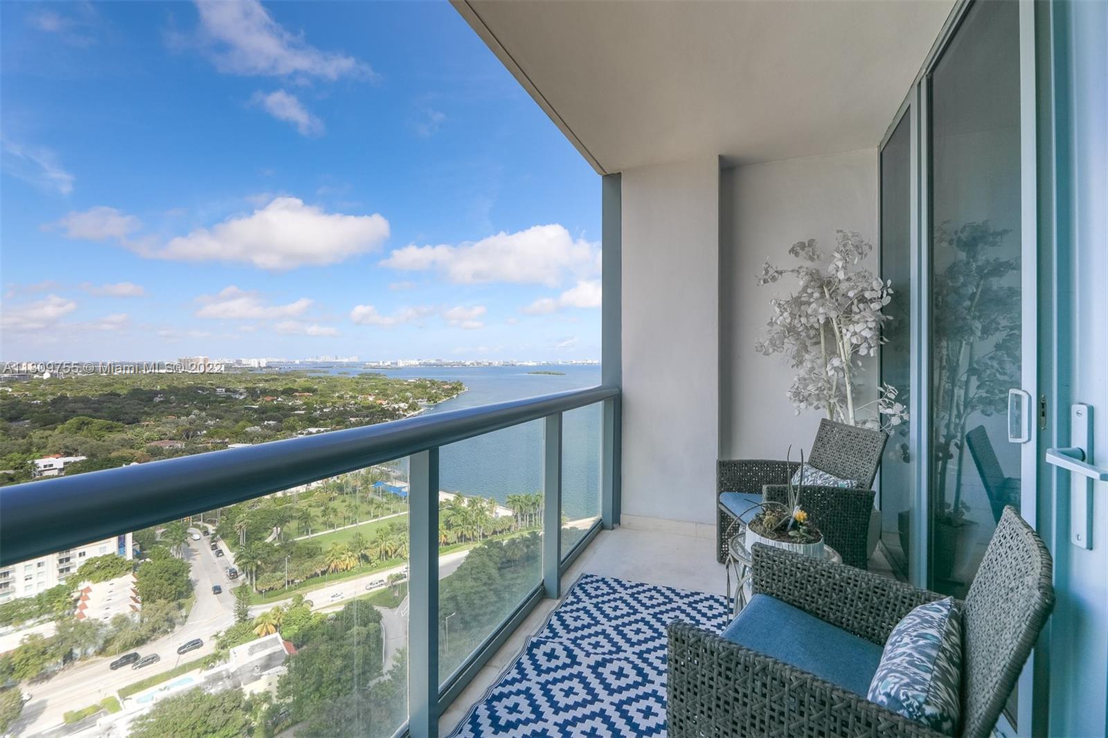 Impeccable waterfront corner unit with unobstructed bay views & magical sunsets in trendy Edgewater. Close to 1500 sf, this spacious 2 BR, 2.5 baths residence is fully renovated with high-end finishes & upgrades. Custom kitchen with waterfall quartz chef's island with wine fridge, Samsung appliances, additional storage. Designer baths include oversized walk-in showers, Toto toilet in master bath. Also features 2 Ac's with Nest thermostats, floor-ceiling impact glass, waterfront balcony. 2 pkg spaces (1 assigned, 1 valet), storage. Resort living: 2 pools, hot tubs, sauna, Gym, movie theater cycling, kids play, game/teen room, business ctr, BBQ, concierge, convenience store. Semi private elevator foyer. Live by Design District, Midtown.Close to Miami Beach, Wynwood, Brickell, MIA airport.