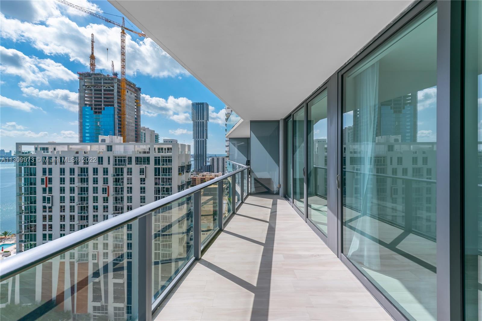 Stunning panoramic unobstructed views of Biscayne Bay, the Miami Beach skyline, and the Atlantic Ocean await you in this impeccably maintained 2 bed/2 bath + den unit in Icon Bay. Icon Bay is a full-service luxury building with a beautiful bay-front pool, state of the art fitness center, tennis courts, numerous social areas, attached covered parking, and 24/7 valet, concierge, and security. The unit is well-laid out and has amazing direct water views from the main living area and primary bedroom as well as sunset views from the 2nd bedroom. This unit has numerous upgrades including custom cabinetry in all closets, porcelain "wood-look" tile flowing throughout the space, and electric shades in every room including blackout shades in both bedrooms. Amazing location in East Edgewater!