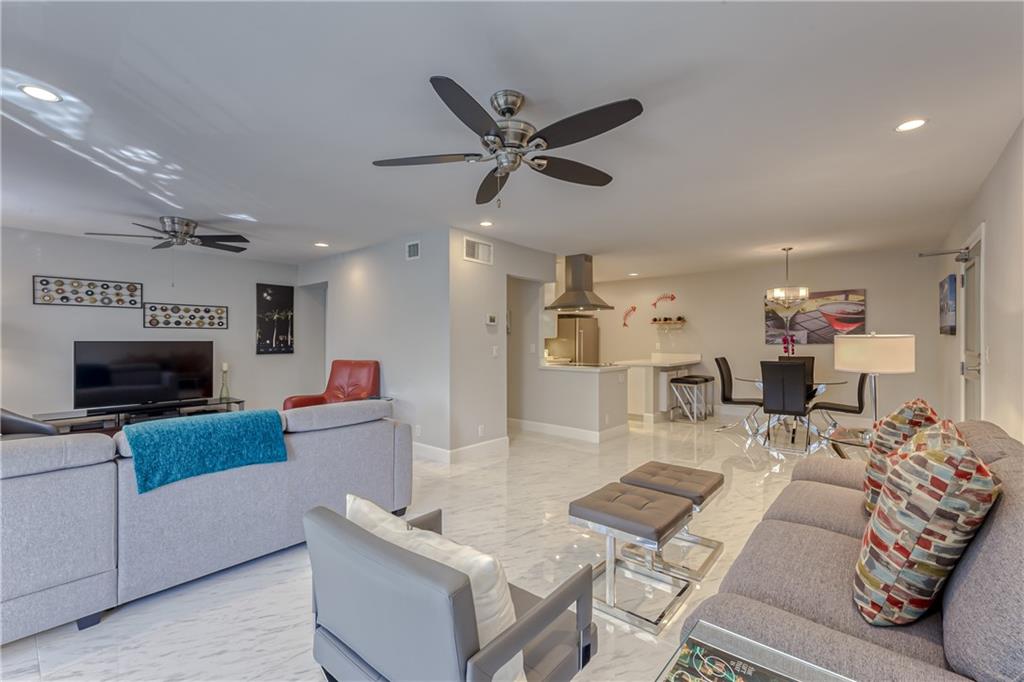 LOCATION LOCATION LOCATION! Beautifully renovated condo unit with open design concept, the spare bedroom is opened into the living room. The unit has impact windows, in unit washer and dryer. Fully renovated guest main and guest bathroom. The kitchen is equipped with stainless steel appliances, beautiful cabinets and quartz countertops. The porched is enclosed with a beautiful view of the tennis courts and pool. Bay Colony Club is a highly desirable community: 6 tennis and 4 pickleball courts, an exercise room, 4 heated pools (1 on the intracoastal with bar), bike storage, barbecue areas and much much more. Add low dockage @$1.50/ft with ocean access for your boat and 24/7 security with gate and private guards. You have it all in a luxorious convenient NE Ft. Lauderdale location.