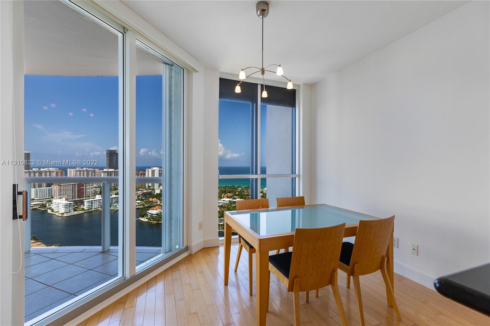 Pristine Lower Penthouse residence with captivating intracoastal and ocean views. This sun-filled condo features ultra high ceilings, a private elevator, hardwood and marble floors, modern kitchen with breakfast nook overlooking the water, floor-to-ceiling high impact windows with accordion shutters, oversized open balconies, and a grand master suite with spa bathroom. Residents enjoy lavish building amenities, including fitness facilities & full spa, waterfront pools, on-site cafe, 4 clay tennis courts, social lounge, library, card room, and playroom & gaming center.