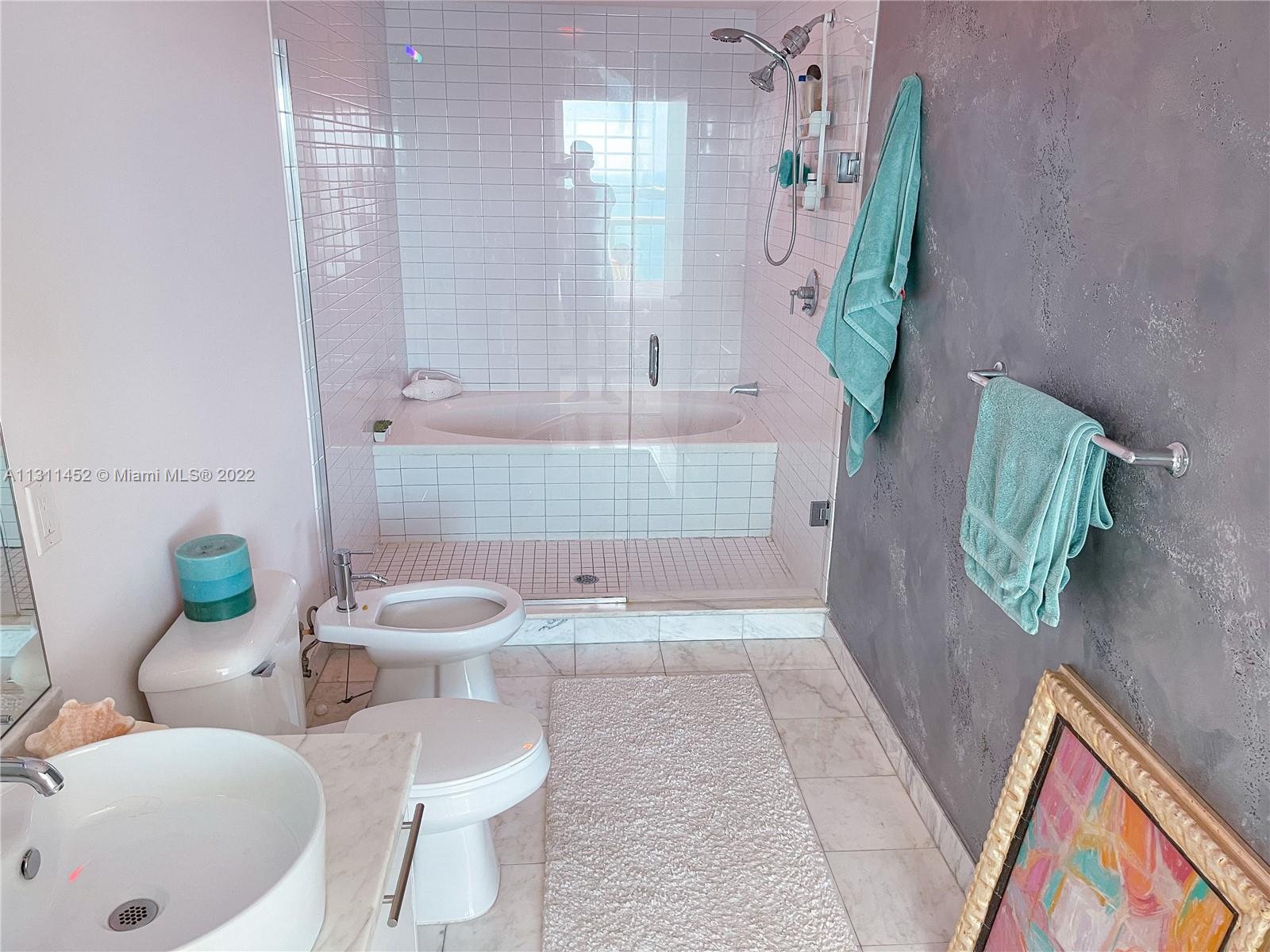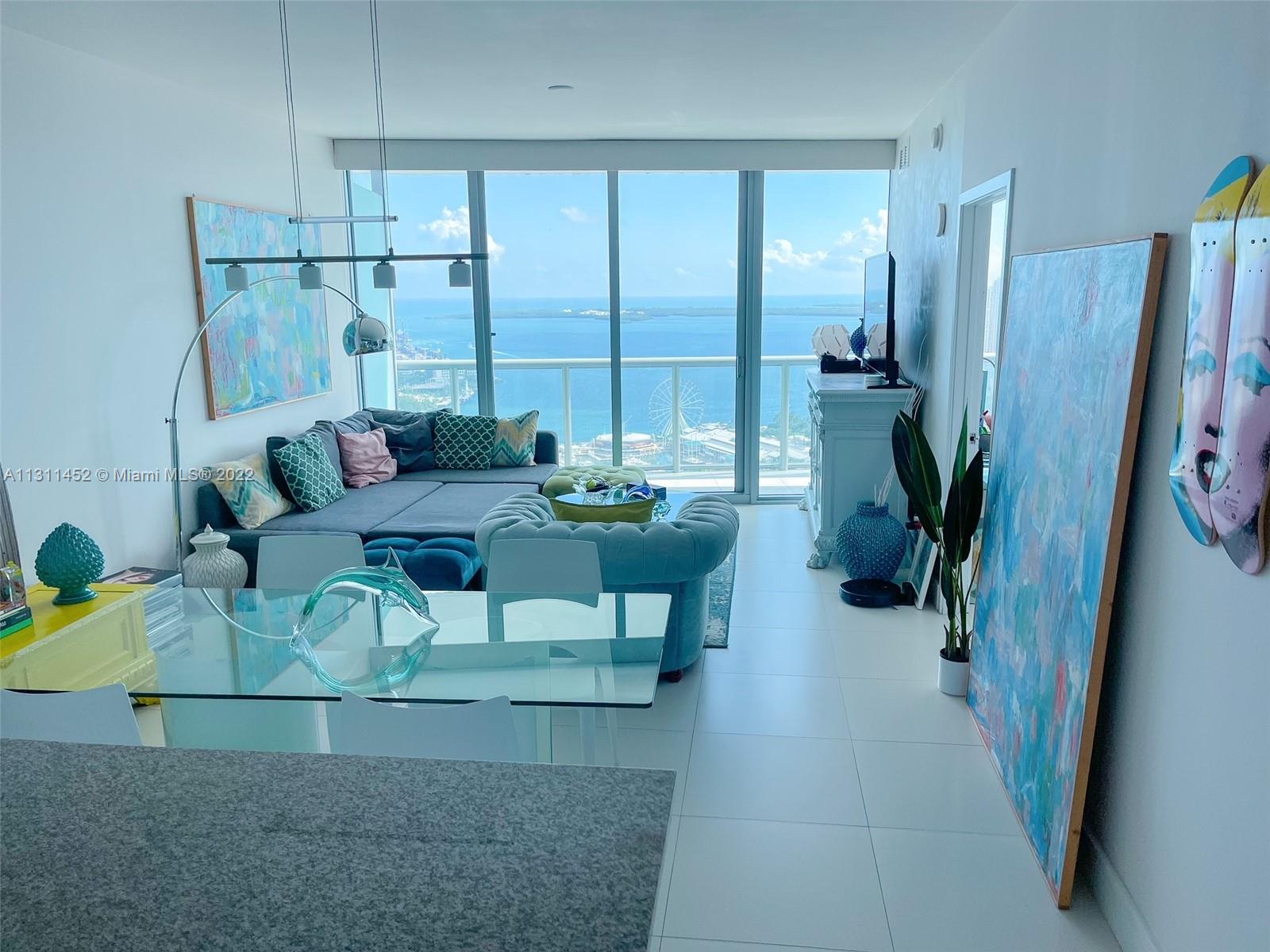 Welcome home to breathtaking unobstructed views of the bay, ocean & city skyline. This is a bright & spacious condo on the 42th floor with one of a kind features such as Venetian plaster, built-in master closet, ceramic tile floors and imported Italian furniture pieces from Murano & Florence. Step outside to enjoy the large balcony with picturesque ocean views that you can access from both the living & bedroom. The building is centrally located, a quick drive to the beach & airport, and it's fully equipped with 24/7 security, front desk, 2 pools sunrise & sunset, jacuzzi, volleyball court, BBQ, full floor Gym & more. This turn-key apartment comes with 1 private parking spot, 1 storage area. New restaurants & shops being built right behind the building, everything within walking distance.