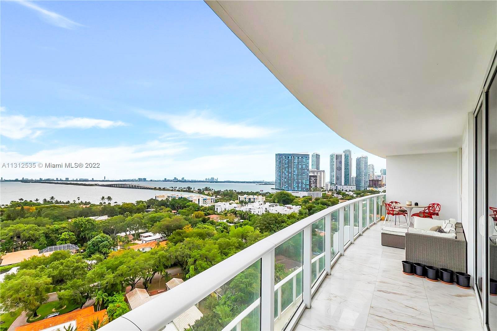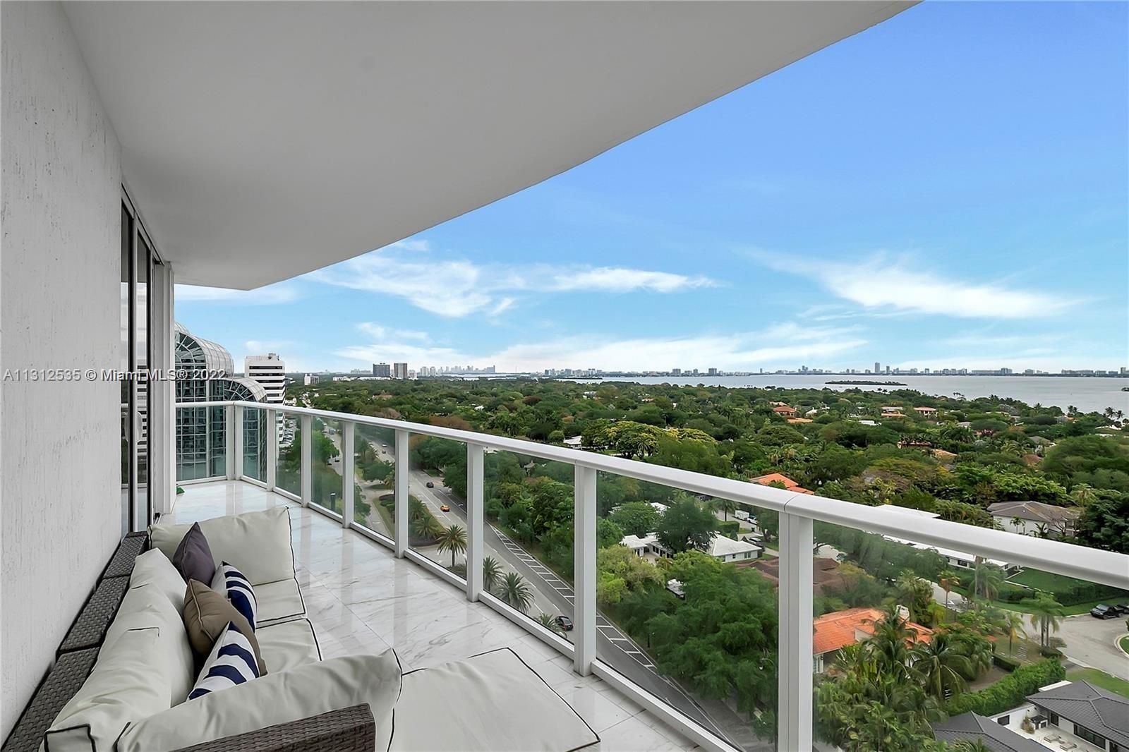 Rare opportunity to own Penthouse Unit at this Exquisite Boutique Condominium, only steps away from Design District. One of only two 3-bedroom condos in the entire building. Unit is 3BD/2BA, Living area is 1,623 SF, total living area 2,633 SF. Corner unit with two expansive balconies, one faces North, and one faces East. Enjoy unobstructed Ocean/Biscayne Bay views, while enjoying the beautify greenery from the Bay Point community right across. You never have to worry about your view being blocked by a new development in this Building. Unit has been tastefully upgraded with white Marble floors, state of the art appliances, walk-in closets. Unit comes with one of the biggest storage spaces available, 2 assigned parking spaces + visitor parking. Security, club room, pool, rooftop terrace.