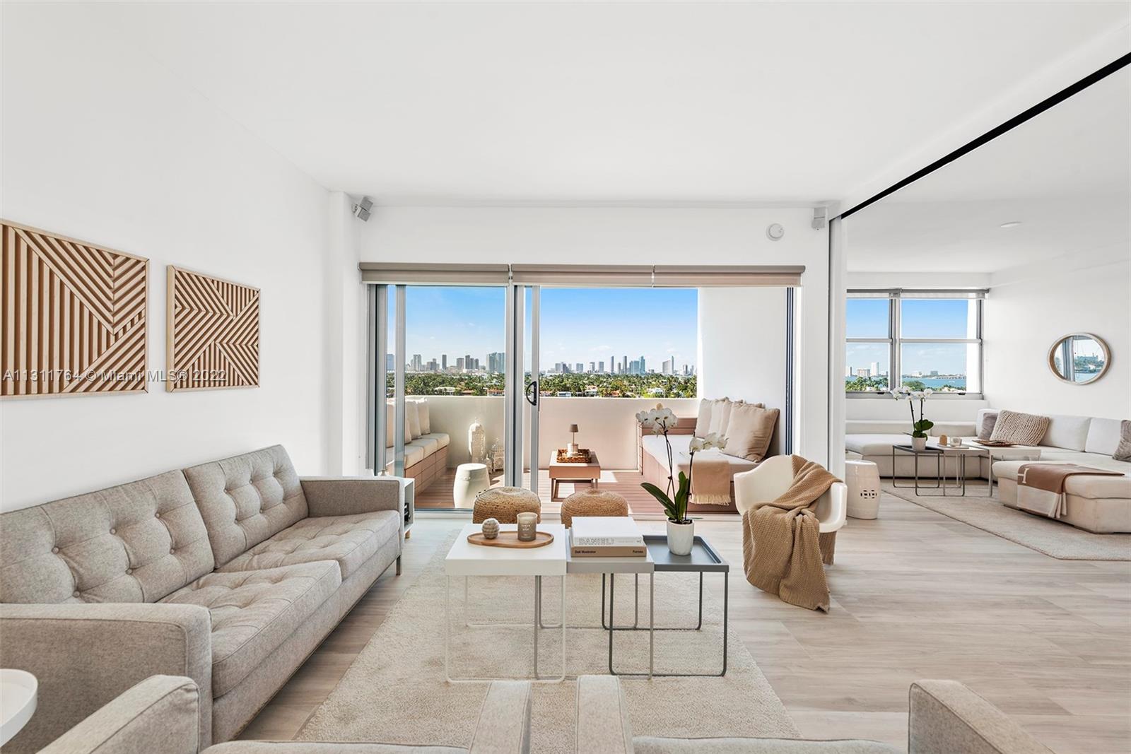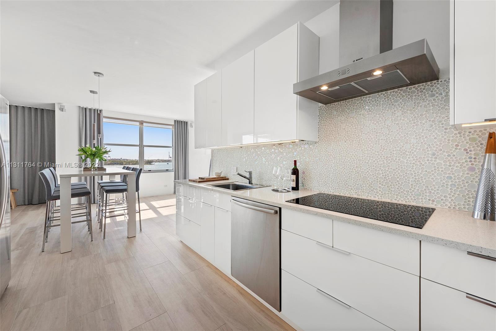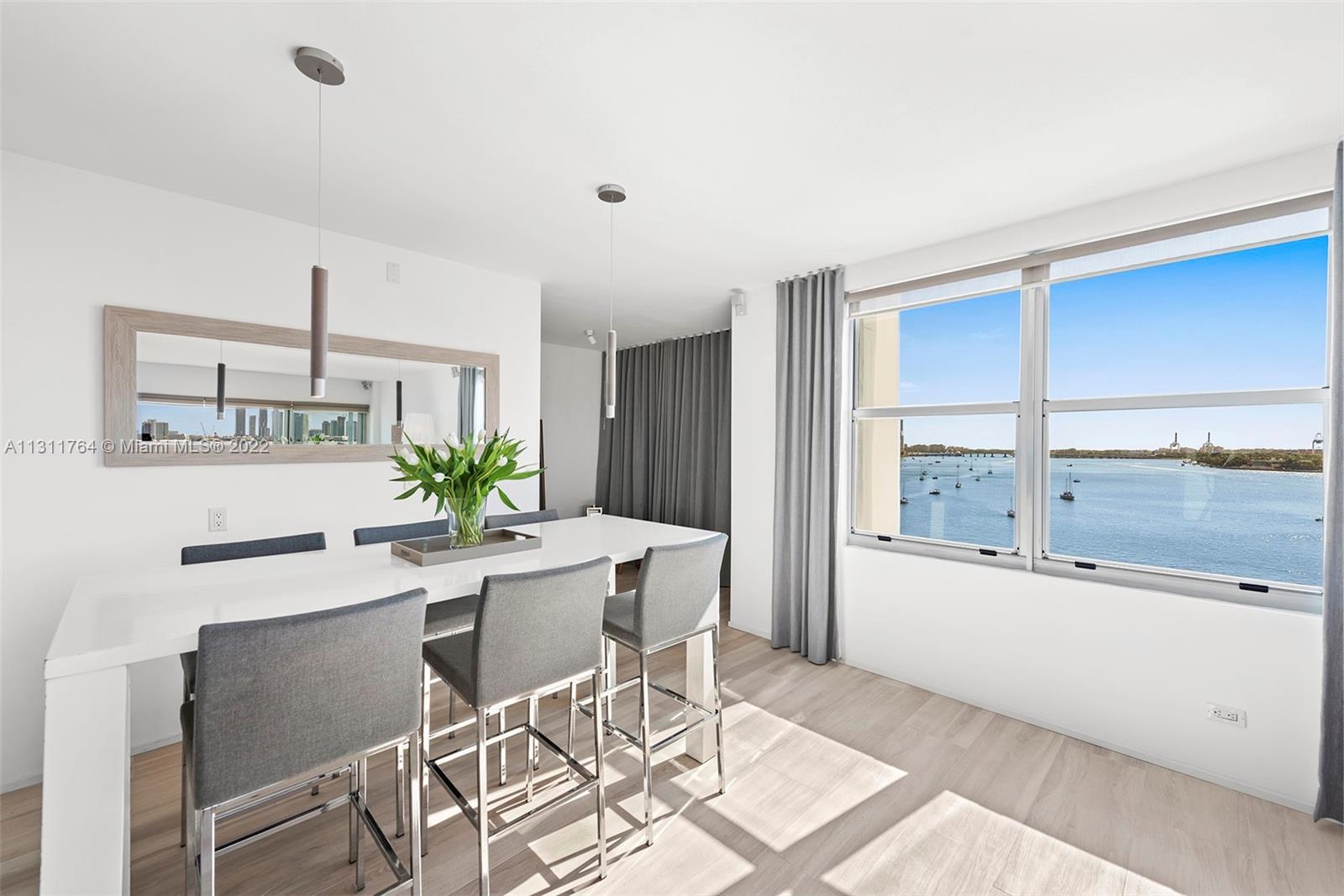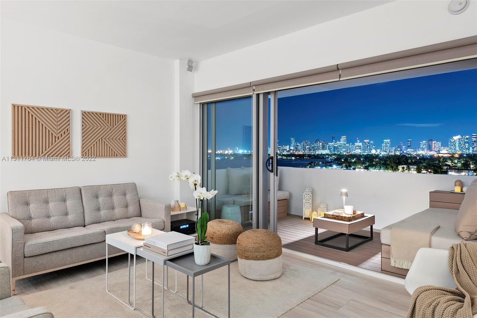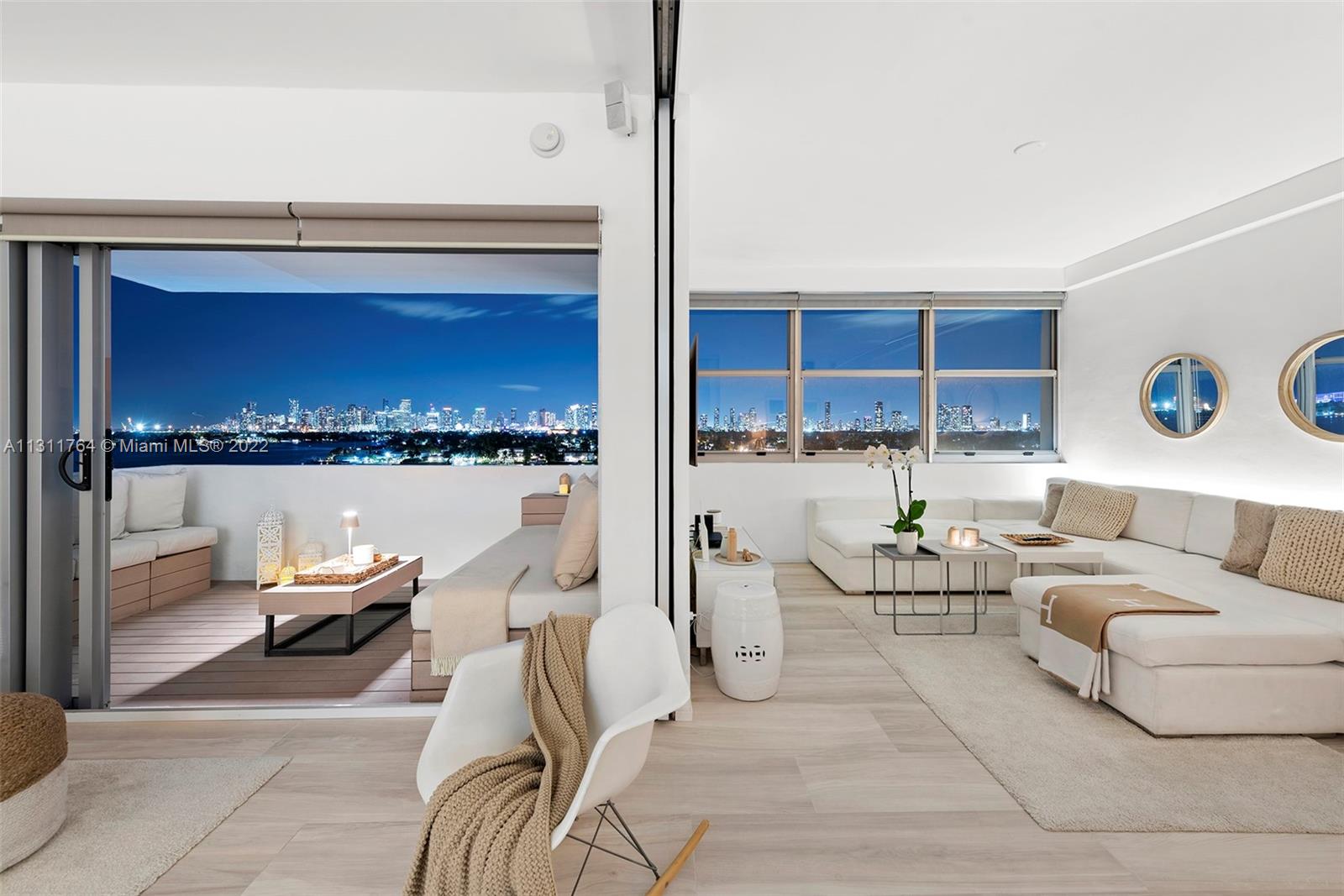 Waterfront living w/magnificent vistas of Biscayne Bay & the Miami skyline highlight this remarkably designed corner unit. A complete remodel of the unit has resulted in a home that is both stylish & comfortable. Each room is enhanced w/beautiful finishes & appointments as well as a design that maximizes the unmatched views. Features include an open kitchen, sliding doors creating a multifunctional floor plan; Italian ceramic tile throughout; custom window treatments & sun shades; ‘Porcelanosa’ wall tiles in both showers & back splash in kitchen; wireless control of a 5-speaker surround system; hurricane proof windows & doors; new HVAC & AC ducts; upgraded electrical. This bayfront boutique building, designed by Morris Lapidus, is just minutes from trendy restaurants & shops.