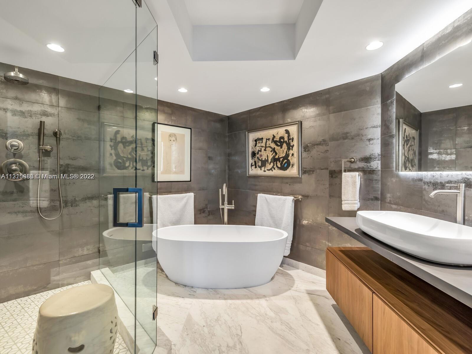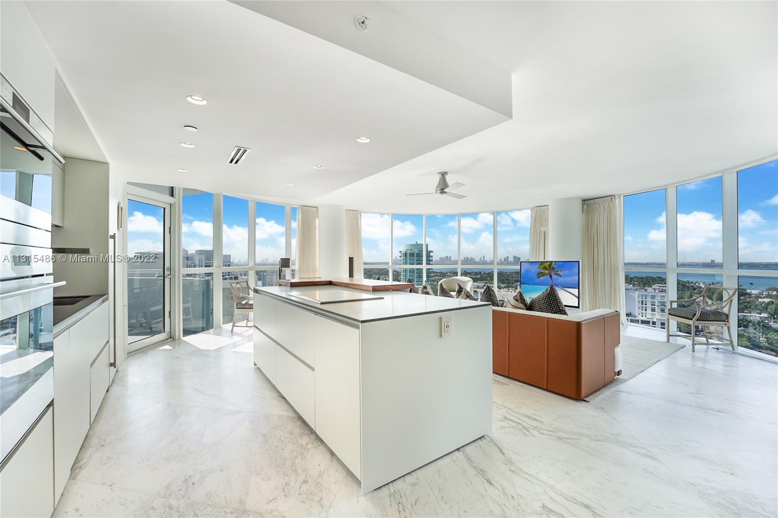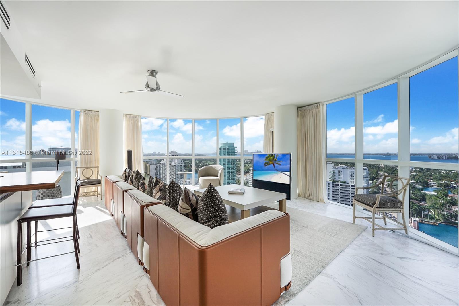 If you love design and appreciate luxury, this is the unit for you! Beautifully crafted with an open plan where the Italian kitchen, dining, and living room, are framed by floor-to-ceiling glass windows, opening to the star of the show: A breathtaking view of the blue Intracoastal, golf course, and the Miami skyline. Step out to the spacious rounded balconies and enjoy the endless Atlantic Ocean views and the most spectacular sunsets. After a meticulous renovation in 2020, this extraordinary Oceanfront Condo is priced to sell! The attention to detail, from the Greek Volakas marble floors, Wolf appliances, Subzero fridge, Toto electric bidets, Ann Saks tiles in bathrooms, walk-in glass showers,electric linen curtains and custom-made Italian closets and cabinetry, this gem won’t last.