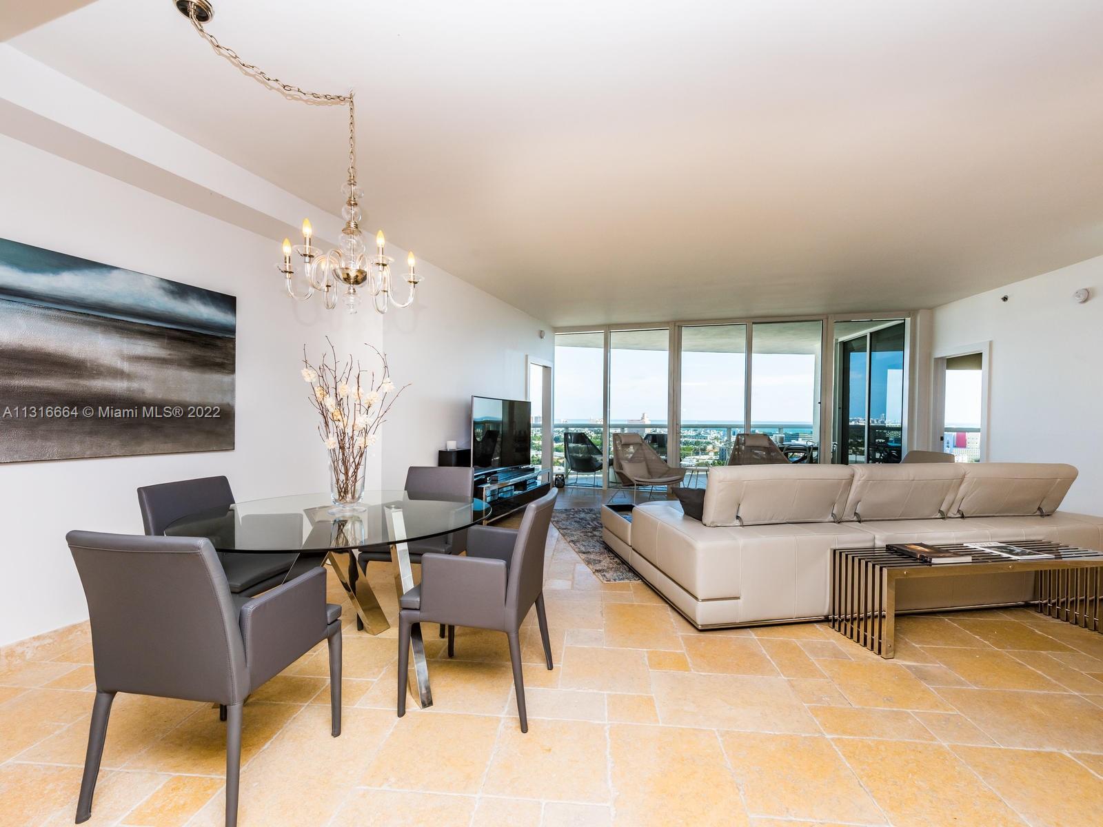 MURANO GRANDE LUXURY RESIDENCE at Miami/ South Beach. Enjoy 180 Degree Bay , Ocean & City Views from every room in the apartment! Floor to Ceiling Glass Window Huge 2 bedroom, 2/5 bathroom and 2 balconies has a dramatic view of the marina, downtown and Star Island. The large master bedroom has an impressive designer's touch with an open Jacuzzi. This South of Fifth building's amenities include Gym, Pool, Boat Dock & Marina Tennis court, restaurant and more.. Walk to the beach, restaurants shopping..