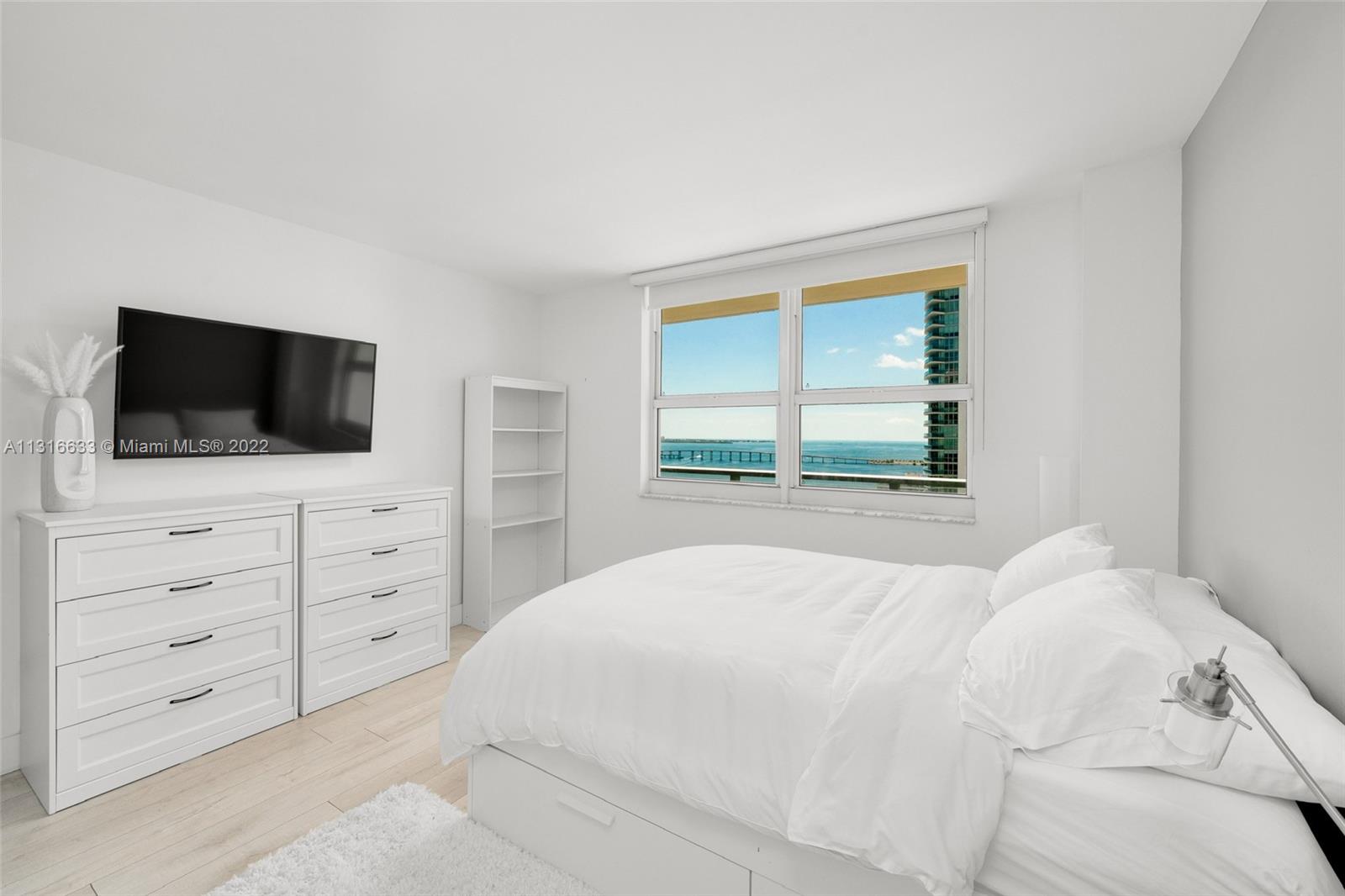 Stunning one bedroom on the 26th floor at the renovated Mark on Brickell. This unit offers spectacular views of Biscayne Bay that can be seen from each room, and a large extended balcony. This remodelled unit features an open kitchen with stainless steel appliances, recently installed waterproof grey oak porcelain floors, a fully redone bathroom and a brand new AC unit. Great opportunity for personal use and/or investment. The building offers resort-like amenities including security, valet, a large bayview swimming pool & spa, tennis and racquetball courts, BBQ area, fitness center, and a full service restaurant on the first floor. One assigned garage parking space and a second valet space is included at no additional charge. Centrally located near shops and restaurants.