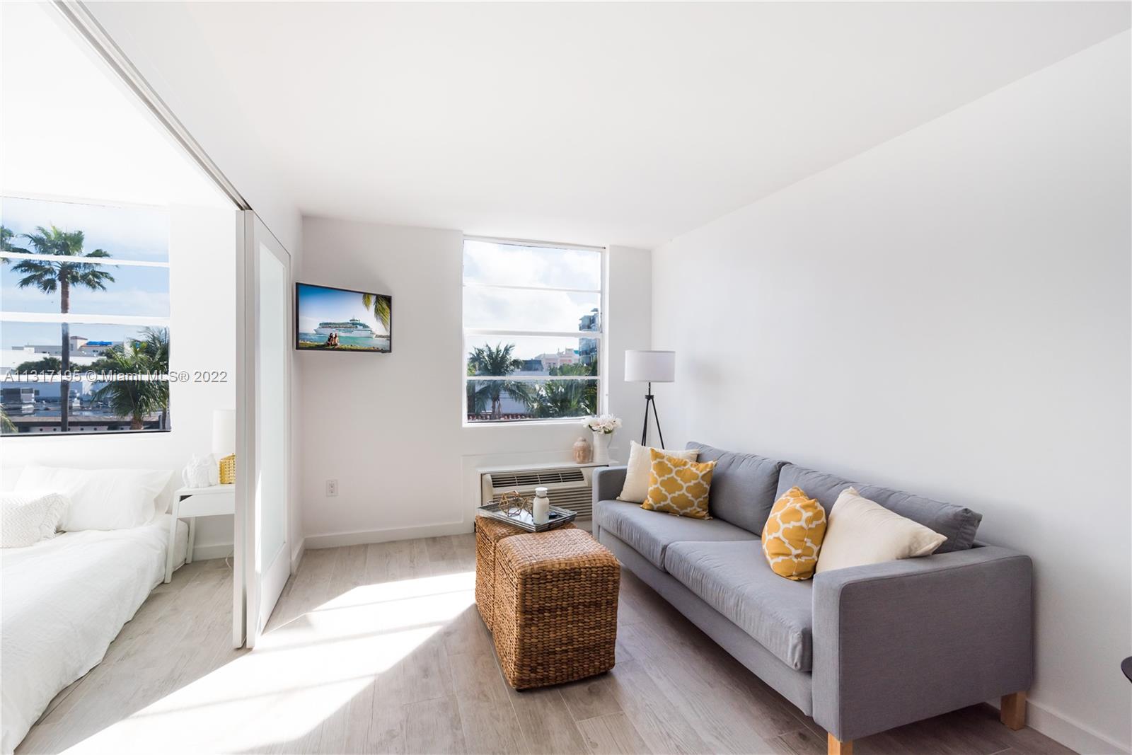 Located in one of South Beach’s most convenient locations, and just two blocks away from the sand! This immaculate 1BD/1BA is available furnished making it move-in ready, or perfect for renting immediately! Thoroughly renovated in 2018 with a new kitchen featuring quartz counters, new wood cabinets, s/s appliances, a gas stove, subway tile backsplash, a pantry, and custom fixtures with Edison bulbs. Newer A/C unit installed in 2020. Porcelain flooring in the living area and a renovated bathroom with a walk-in shower, porcelain tile, and marble flooring. Dual closets in the bedroom, and a large living/dining room area. Natural light throughout provides a great view of Washington Ave. Moments away from the beach, shopping, restaurants, and much more!