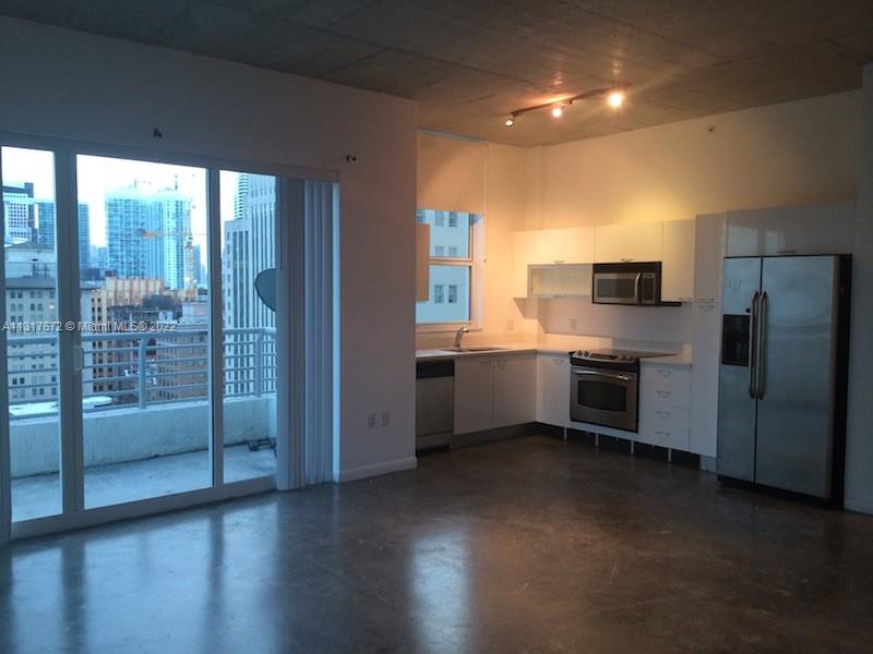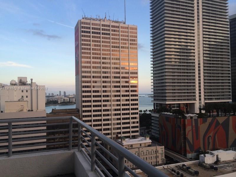 Corner unit with oversized wrap around balcony with water and city views. Modern bathrooms and kitchen with stainless steel appliances. High ceilings. Open concept living room and kitchen. Washer and dryer in unit. Community pool and rooftop fitness center. Located in downtown near public transport (Metro mover, Metro rail, busses, trolley), restaurants and shopping.