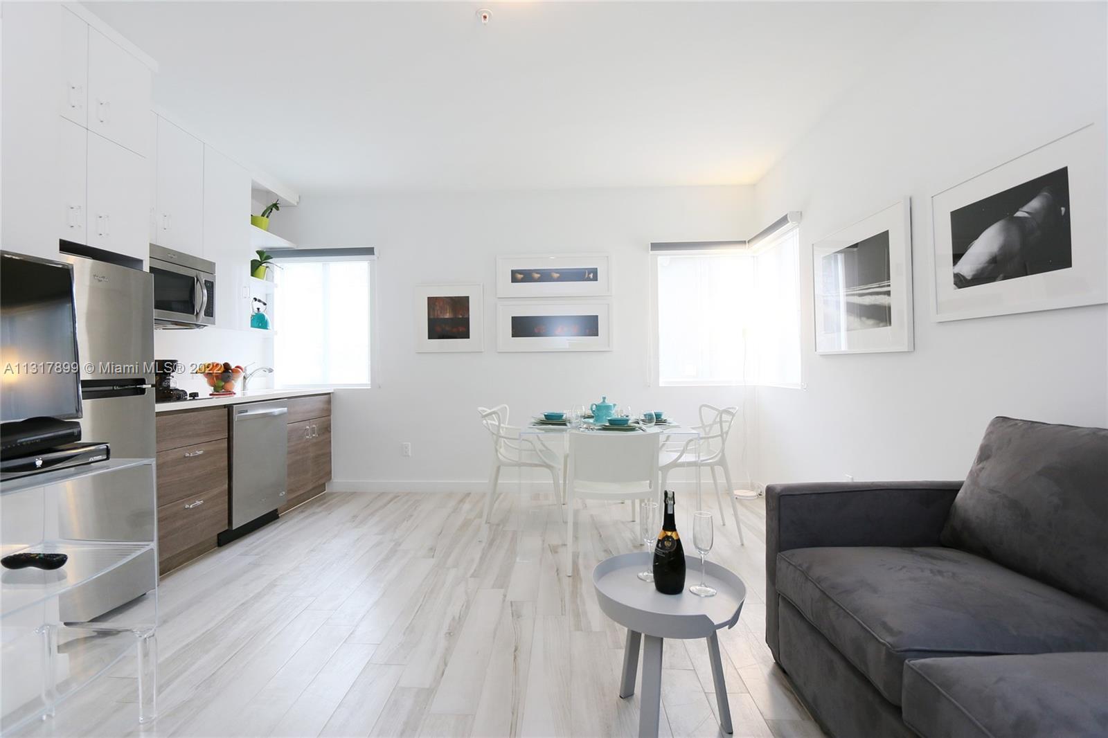Beautiful Condo Conversion- just a few steps to Lincoln Road Mall, well divided one bedroom corner apartment with plenty of natural light. Top floor, corner unit. Italian Kitchen with white quartz counter top, stainless steel appliances, porcelain wood ceramic floor, high impact windows, washer/dryer inside the unit. The perfect unit in the heart of SOBE. CABLE, INTERNET, WATER/SEWER, TRASH AND INSURANCE ALL INCLUDED IN MONTHLY MAINTENANCE!! UNIT IS TENANT OCCUPIED UNTIL JUNE 2023. CASH ONLY. RENTED $1,850 UNTIL JUNE 16,2023.