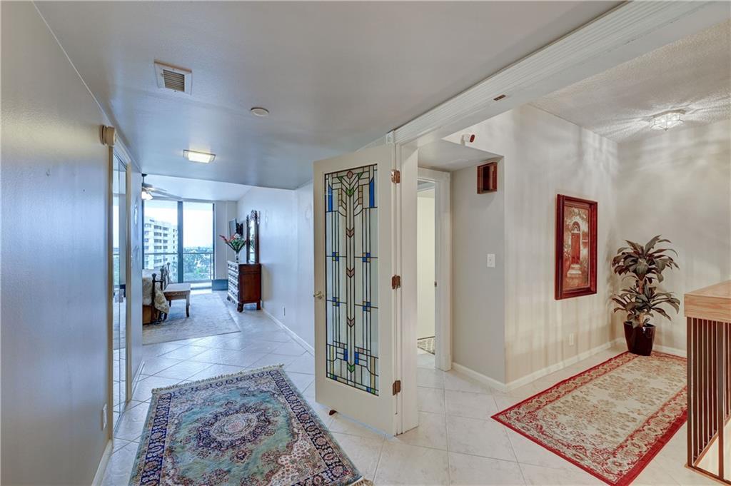 Updated two story townhome style unit in a redone boutique building on the beach. Great intracoastal views and views of Lake Santa Barbara. 2 bedroom 2.5 baths plus a den. Renovated chef’s kitchen, granite counters, stainless steel appliances, balconies of living room and bedrooms. Hurricane impact windows and doors throughout with garage parking. Beautiful master suite with great closet space and storage. Master bath has a separate tub and shower. Interior utility room with full size washer and dryer. All assessments paid and concrete restoration and balconies completed! Great amenities including building security, fitness center, library, extra storage, kitchen facilities. Small pets allowed. 20 pounds or less.