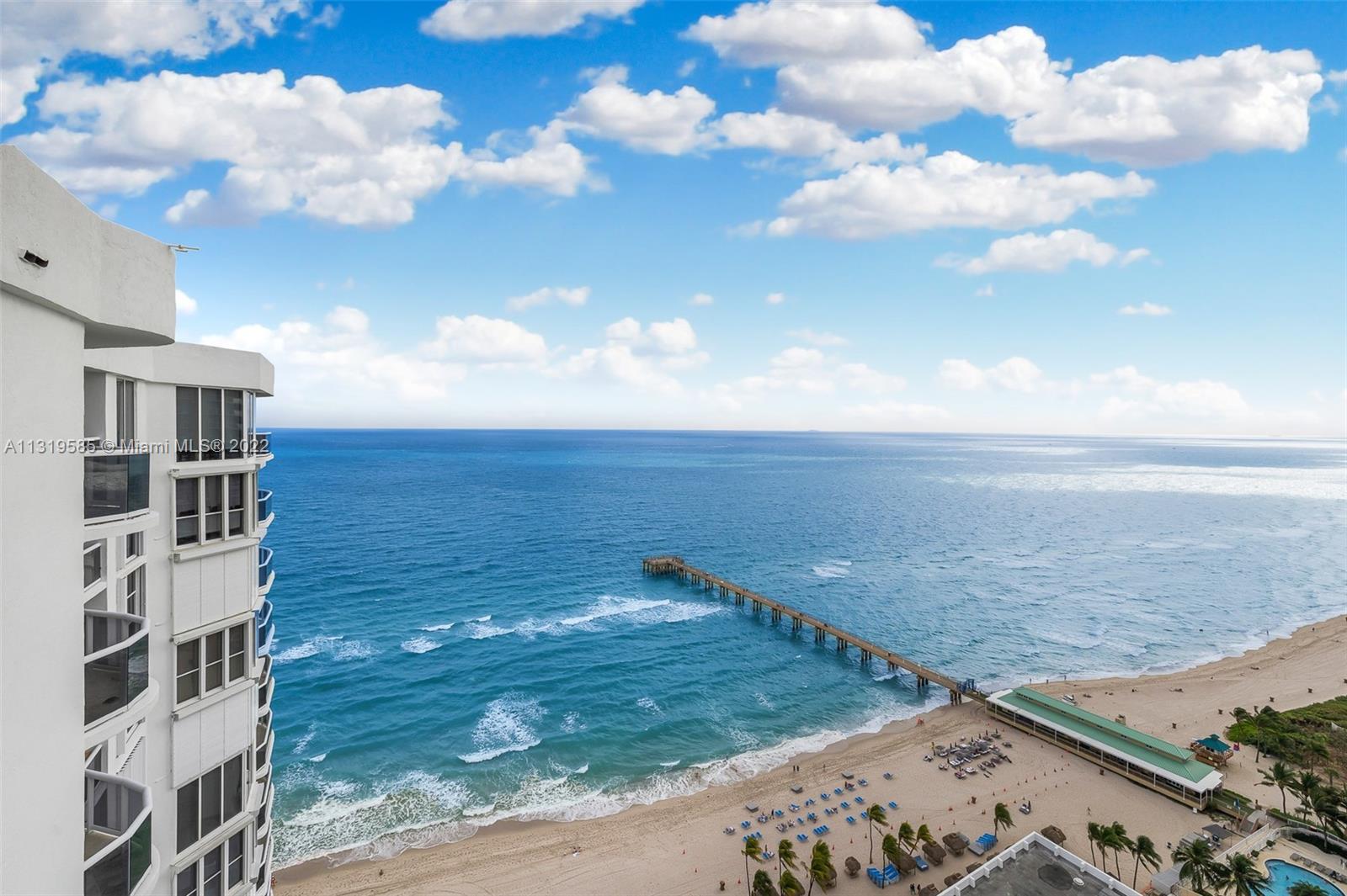 Be mesmerized by the view from this Tower Suite unit! Located on the top floor of desirable Sands Pointe, this 2 bedroom, 2 bath plus den (or 3rd bedroom), preserves its original elegant finishes. With 9 ft floor to ceiling windows, the extra ceiling height provided by this unit gives an added sense of space as you look out to the ocean, pier and intercoastal views. Kitchen provides room for a breakfast table. Laundry room. Additional storage space in the building. Sands Pointe offers many amenities and resort style service for beach use. Building is near completion of major renovations to pool area and deck. Additionally, private pool cabana available for purchase with unit!