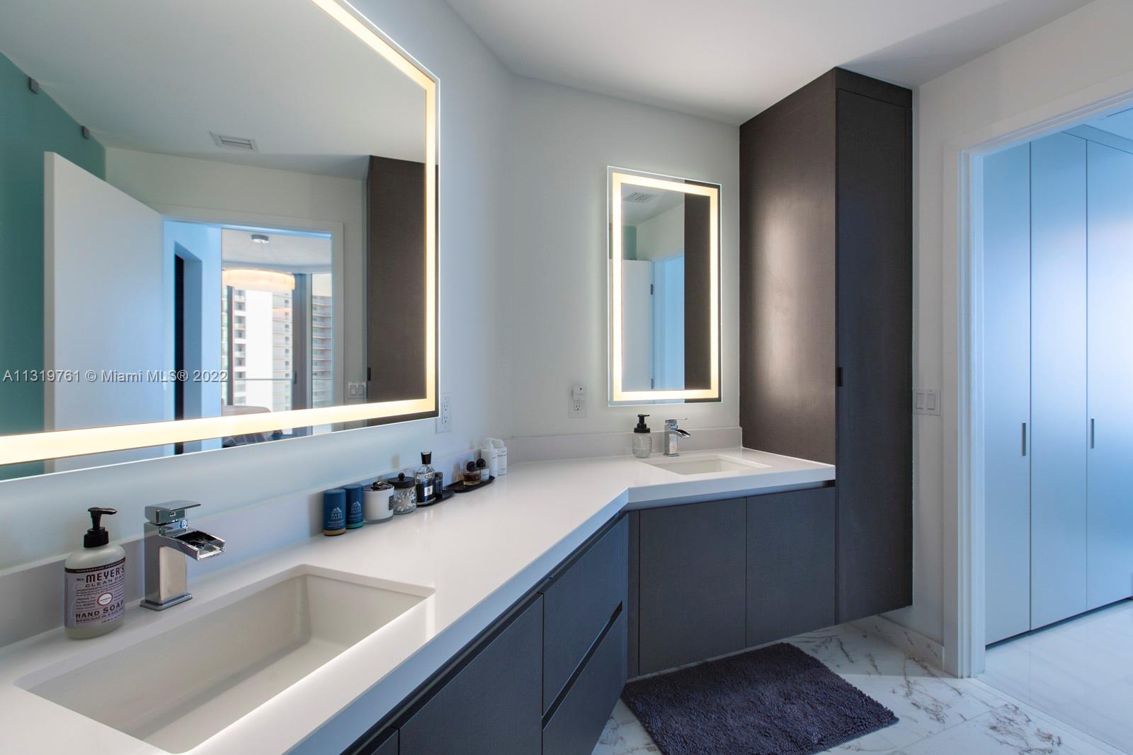 Exquisite custom residence with over 3,000 SF at Paramount Miami World Center. This combined residence offers large entertaining space, floor to ceiling windows offer lots of natural light and stunning views of the city and Biscayne Bay, two primary bedrooms with ensuite bathrooms and two balconies. Large open area with full bathroom can be easily converted into a third room. Designed by Steven G with redesigned kitchen with custom cabinetry by Italkraft, Subzero and Miele appliances Geoluxe countertops, Poliform closets, motorized shades, large 30x70 Italian porcelain floors, contemporary lighting, custom built-ins and bar. Two self-parking spaces included. Building offers an amenity rich environment including multiple pools, gym, spa, jam room, media room, and more.