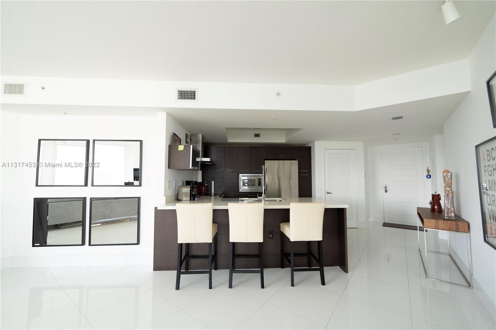 The best line at St.Tropez, Tower 3. This spectacular 3 bedroom/ 2 bath apartment features fabulous water/ city views from every room. Offered fully furnished, this designer decorated residence features impact glass windows, large balcony, walk-in closet, open kitchen with top of the line appliances and it is ready to move in. Building Amenities include 24 hour concierge, security, valet, infinity pool, gym, sauna, among others. Enjoy the Florida Riviera! Unit is vacant and easy to show.