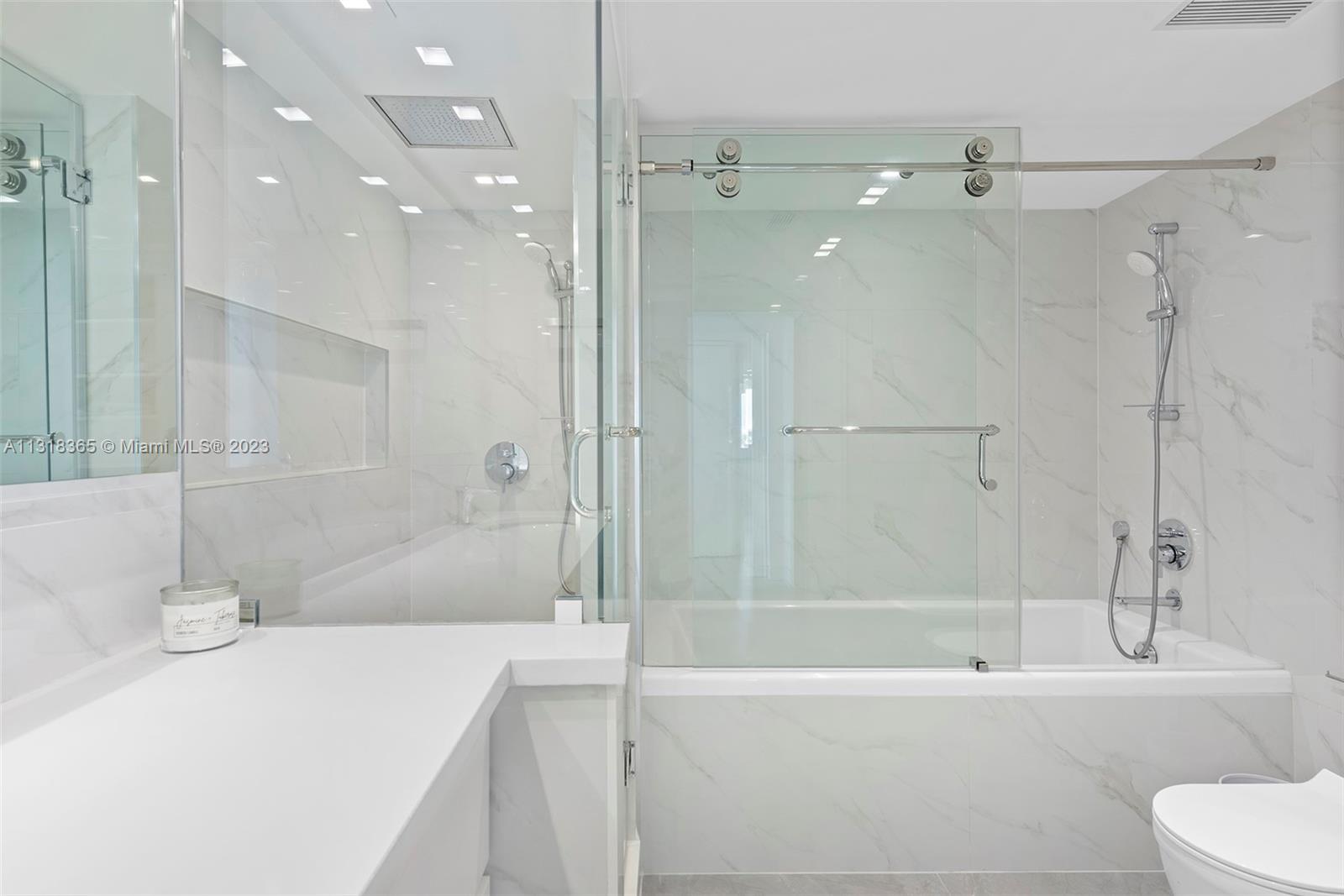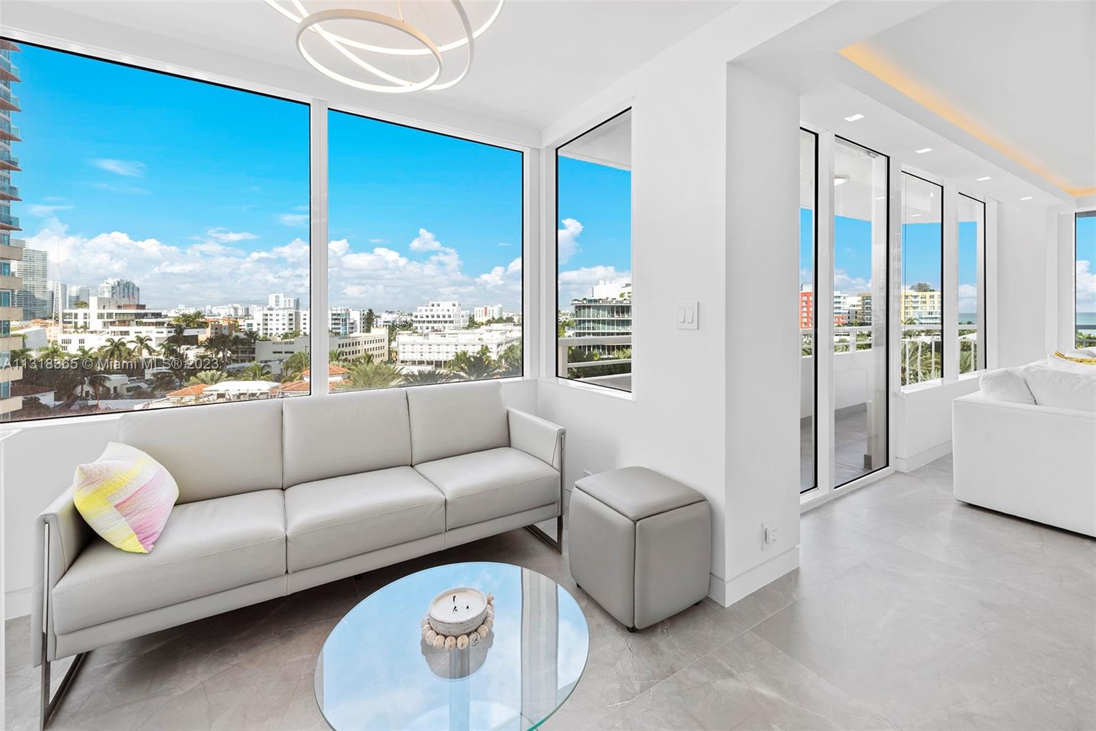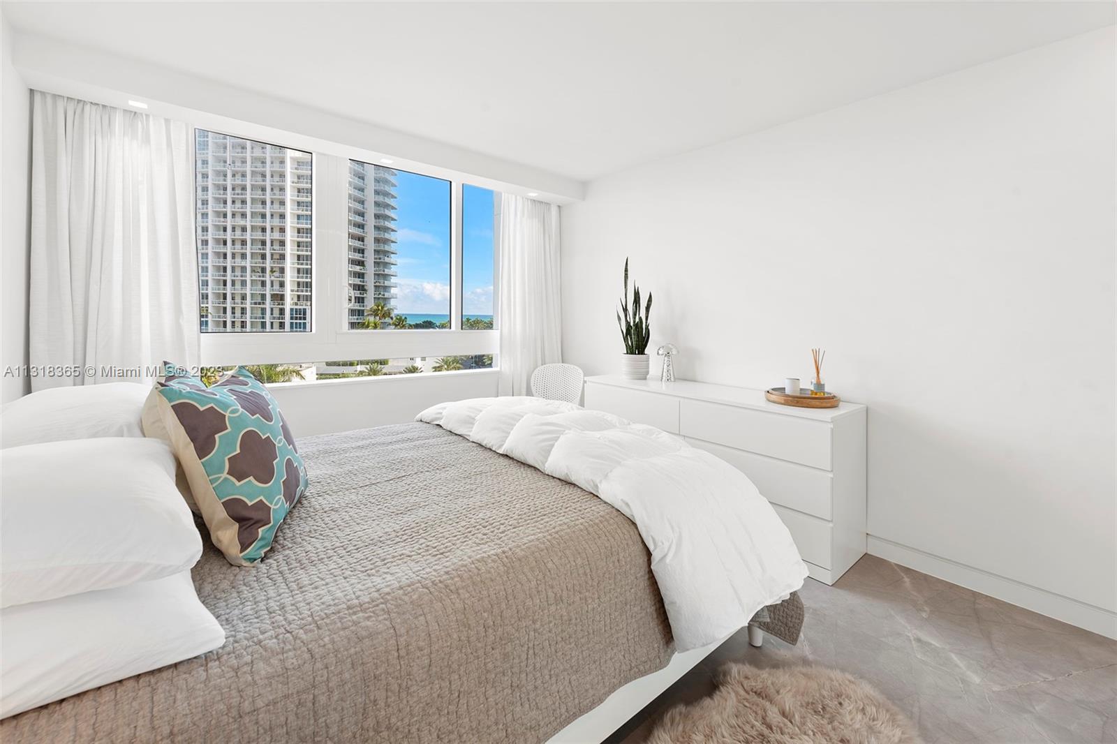 Dreamy direct east, corner, fully reconstructed residence, steps to the sand in the highly sought-after South of Fifth enclave. New minimalist design and maximized floorplan features Italian flooring, backlit LED soffits, new hurricane impact galss+doors, new A/C and custom-built closets. Open kitchen features large island, Wolf appliances, wine vault and charming breakfast-knook with views to Fisher Island. Enjoy daily panoramic sunrises over the Atlantic Ocean from a wonderful wraparound terrace. Having the most competitive price point for a 3bedroom in the tower, this makes for an opportunistic investment, vacation home, or year-round residence. South Pointe Tower is in final stages of major renovation including newly opened pool/deck, new tennis courts and new opened fitness center.