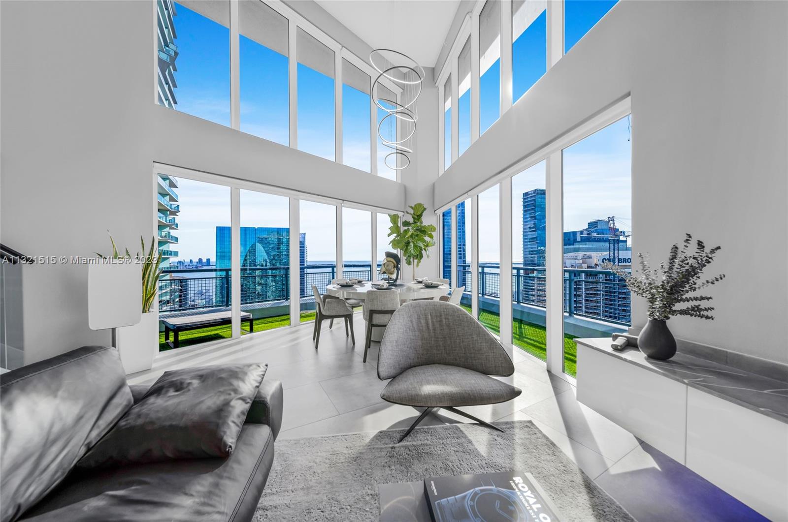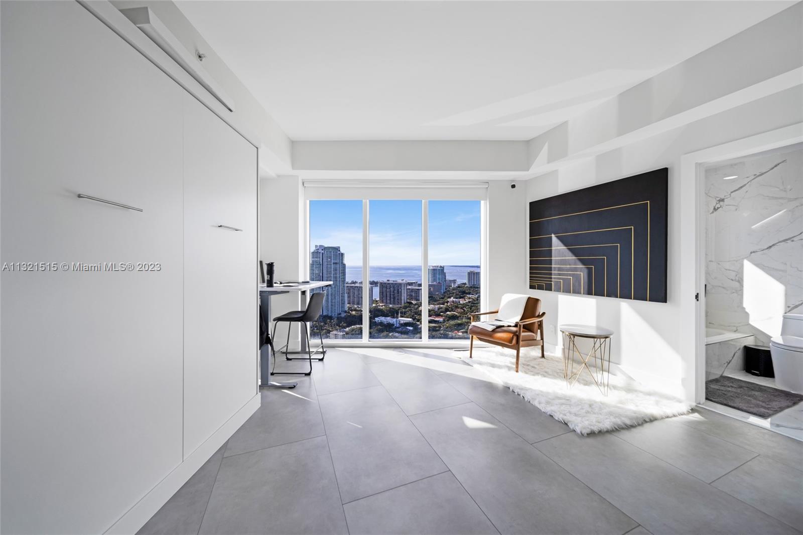 This astonishing and visually dramatic two story residence at Infinity at Brickell is a one of a kind corner unit just remodeled in 2022. Floating 36 floors up on the south east corner with expansive views of the bay, ocean and the city. This unit will wow you from the very entrance with the double height ceilings and floor to ceiling glass windows that make you feel like you are in the clouds. This 2,415 sq ft 3 bedroom, 3.5 bathroom features custom floating staircase, Architectural Lightning, floating vanities, luxury toilets, custom closet cabinetry, and more. Building amenities include: pool, jacuzzi, sauna, steam room, bike storage, 24hr security, concierge, valet parking, and a cafe´/market in the lobby. Enjoy walking to everything Brickell has to offer.