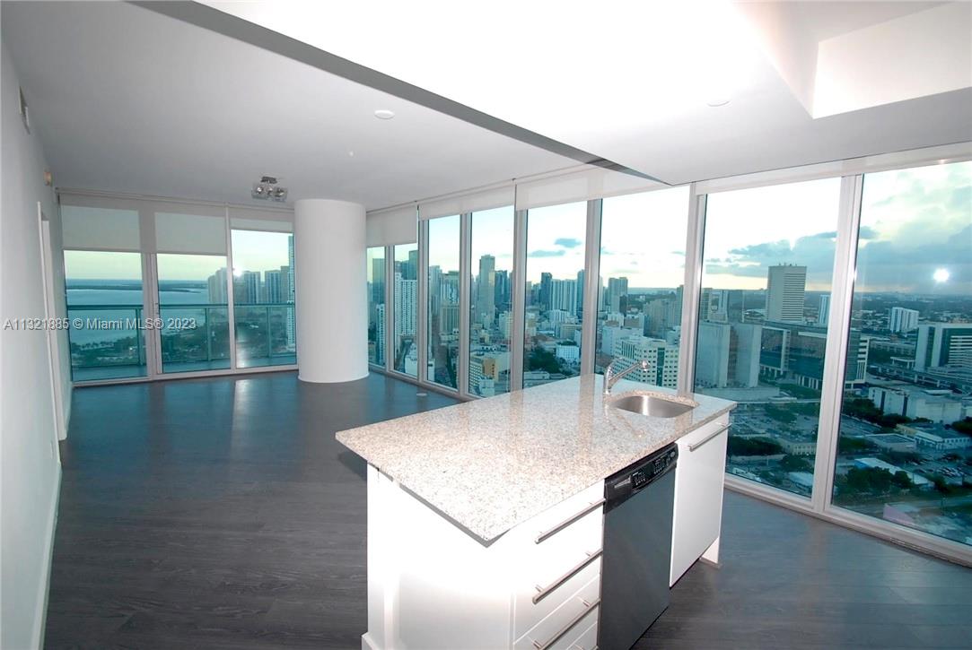 Beautiful 2/2 apartment at the 38th floor. Spectacular views of Biscayne Bay, Key Biscayne and downtown Miami. Tiles floor, W/D in the unit, very spacious and bright. 1 parking space, storage cage and cable tv. Located in the heart of downtown Miami directly across from the Arena and few steps from Bayside. 5-star building with excellent amenities including 2 swimming pools, fitness center, sand volley ball court, putting green, etc.