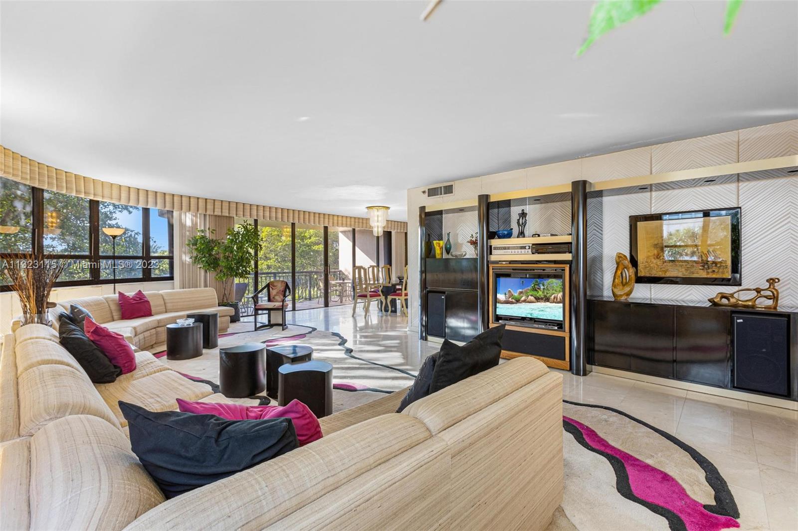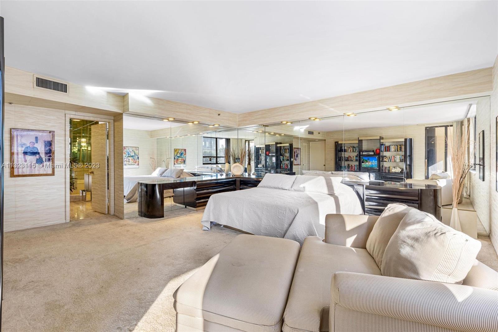 Bring your best design ideas and come ready to customize this spacious corner unit located on the ocean. With 1,967/SF, this 2 bed 2.5 baths plus Den features a well distributed floor plan with generous room sizes, 2 oversized balconies with access from every room, massive walk-in closet and an abundance of closets. Unit overlooks the fountains, lush landscaping and is surrounded by tree tops creating an intimate setting. The Tiffany is a boutique building with endless amenities such as beach and pool service, fitness room, community room, business center, doorman, security, valet and more. Situated on the beach, enjoy walking, jogging and biking on the wide beach path to the jetty or all the down to South Beach. Easy stroll to Bal Harbour Shops, restaurants and Surfside.