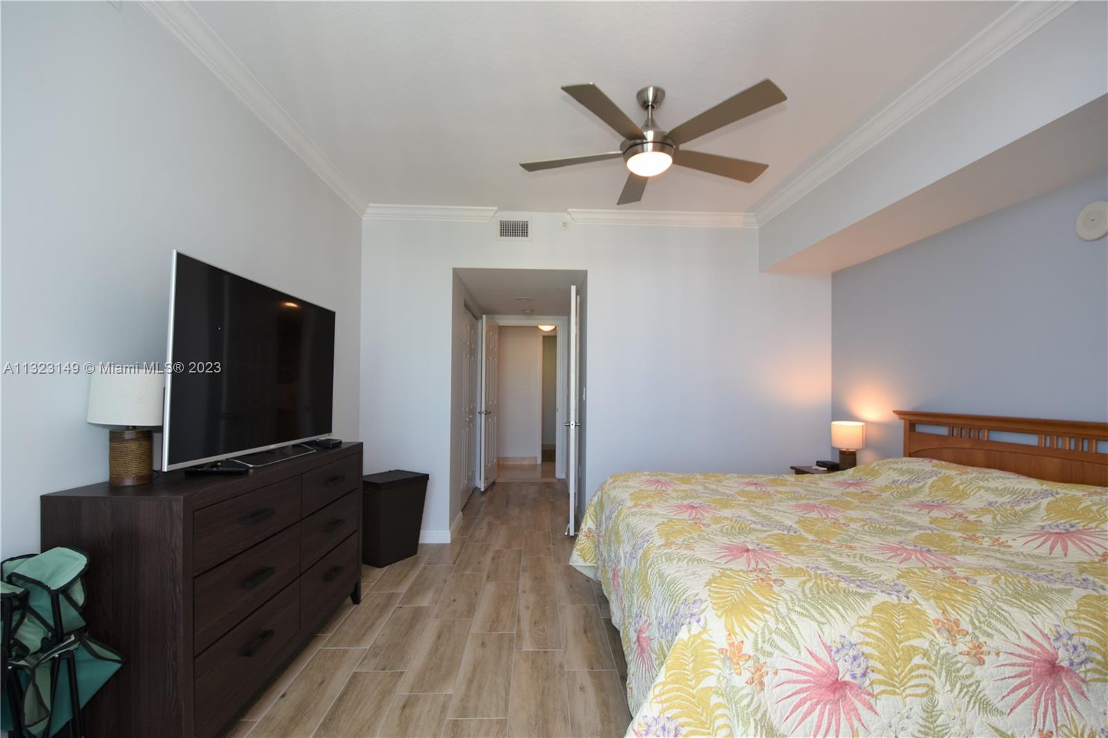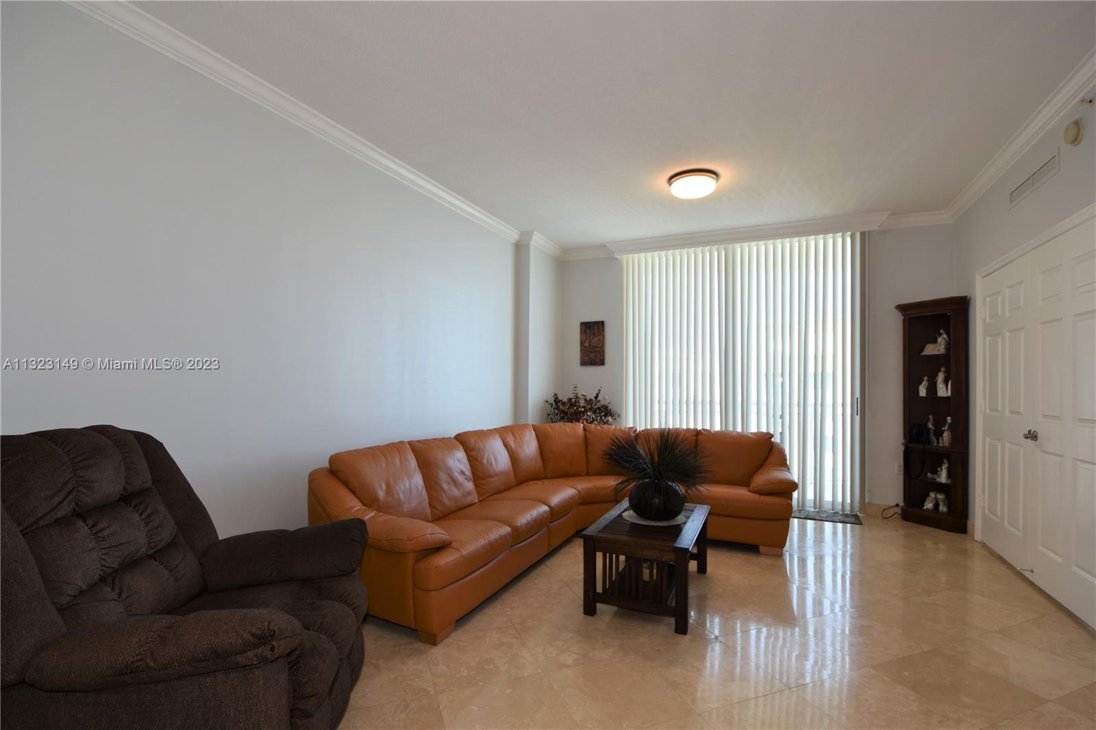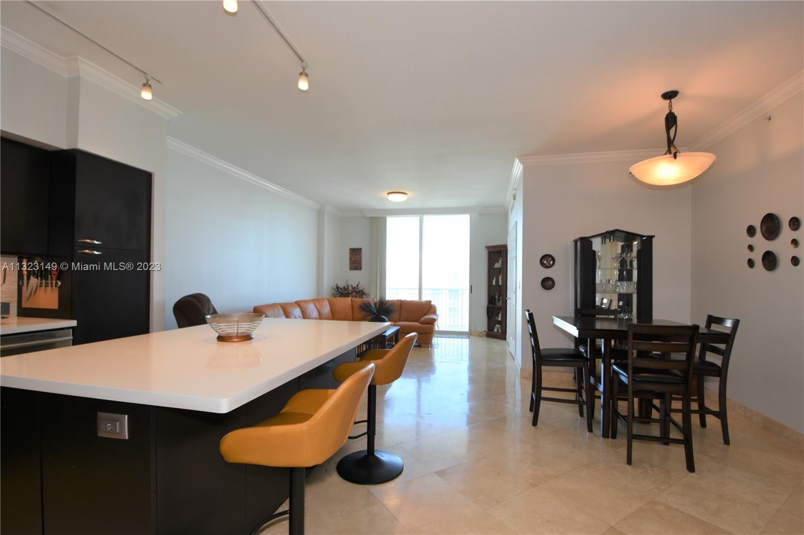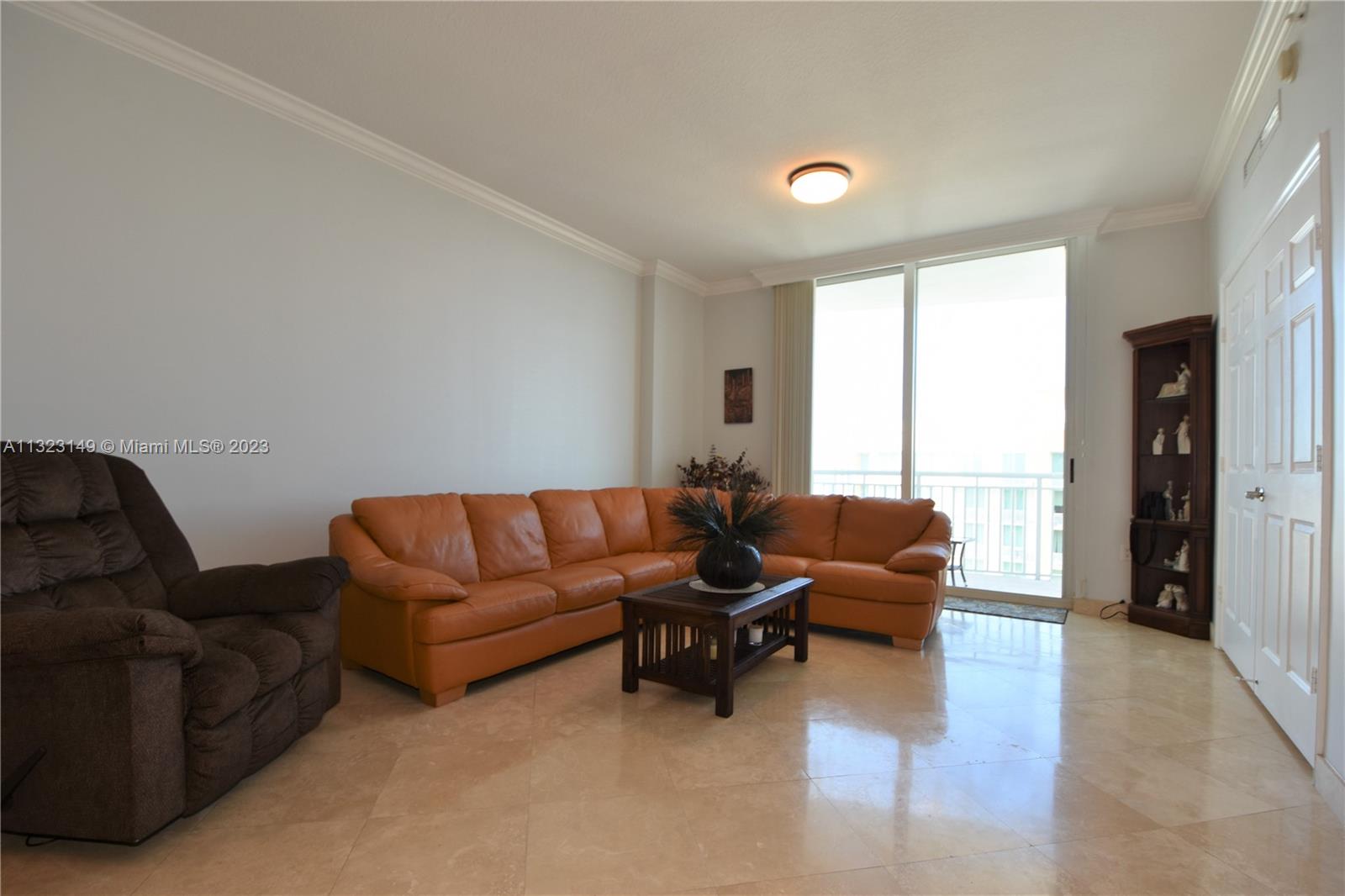 Most desirable floorplan in building for sale!!! 10 feet ceilings, great layout. Remodeled kitchen and bathrooms. New vertical blinds. Marble floors in living room and kitchen area. NEW AC UNIT. Custom built-in clostes. Crown molding throughout the residence. 2 parkings spaces assigned. Walking distance to shops, restaurants and Hallandale Beach! Easy to show.