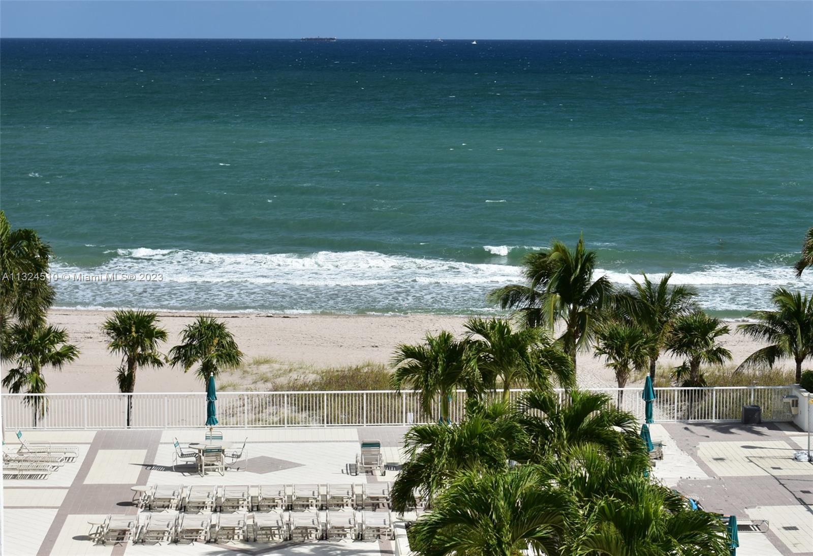 Offering 2 bed/2 ba unit with DIRECT OCEAN VIEWS and IMPACT WIMDOWS), in Lauderdale By The Sea. All windows offer views of waves, sailboats and departing cruise ships. The open kitchen design offers the “chef” a view of the ocean beyond. Stay secure with a gated entry and 24 hour guarded security, plus indoor parking in a dedicated spot. Ample free parking for your visitors is available. The washer and dryer are within the kitchen, hidden within its cabinet. Crown moldings and large diagonal ceramic tile floors throughout the unit. Amenities include large pool deck and heated pool, beach barbecues, free lounges on sand for sun bathing, barbecue area on pool deck, saunas, large ocean view party room with kitchen, card room, billiards, gym, and tennis courts. Furniture negotiable.