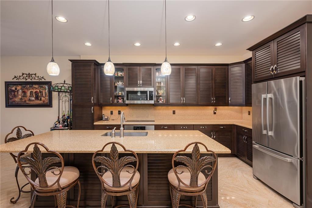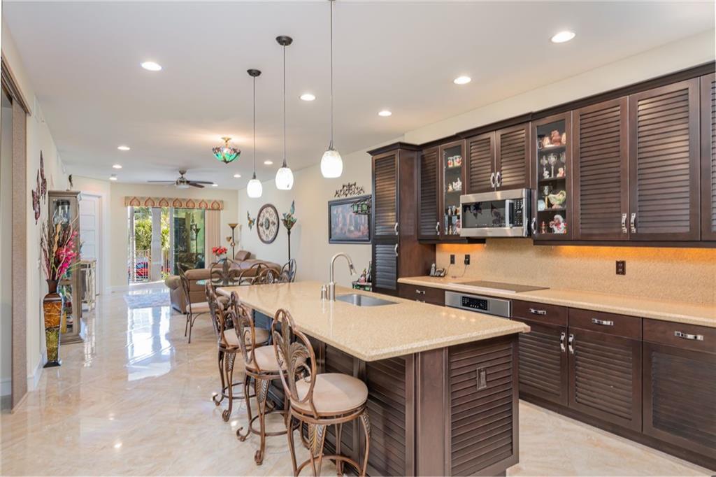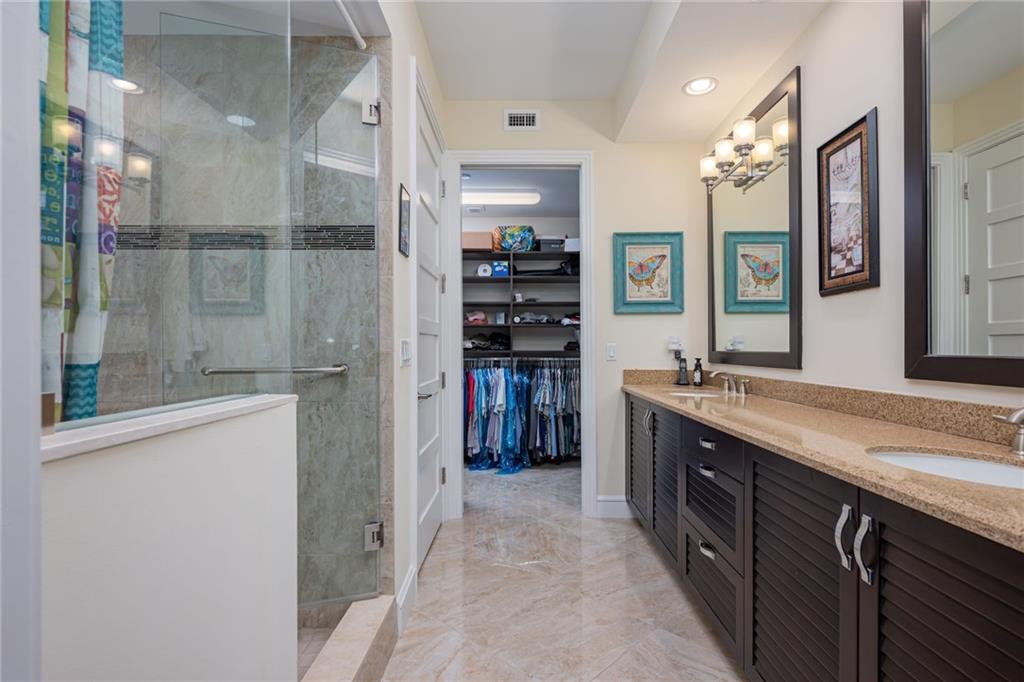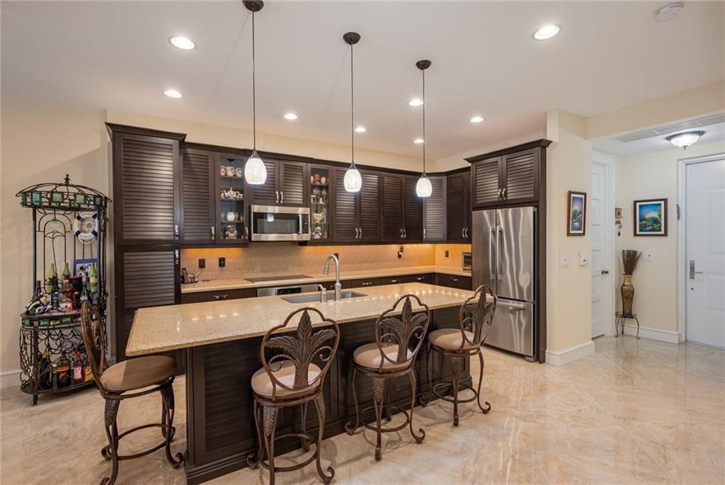 PHENOMENAL 2 BED 2 BATH SPLIT UNIT WITH BRIGHT WATER AND COURTYARD VIEWS LOCATED AT VILLAS BY THE SEA. FEATURING A LARGE DEN/OFFICE WITH MARBLE FINISH TILE FLOORS THROUGHOUT, BEUATIFULLY UPGRADED KITCHEN WITH LARGE ISLAND, WOOD CABINETRY, QUARTZ COUNTERS ANS BOSCH STAINLESS STEEL APPLIANCES. SEPARATE LAUNDRY ROOM W/FULL SIZE WASHER AND DRYER. VOLUME CEILINGS W/HUGE WALK-IN CLOSETS. ADDITIONAL STORAGE LOCKER IN GARAGE WITH 3 DEEDED PARKING SPACES W/24HR MANNED SECURITY. PRIVATE BEACH CLUB CABANAS, POOL, SPA, BBQ, GYM, TENNIS COURTS, FISHING PIER, ETC. CLOSE TO SHOPS, RESTAURANTS AND ENTERTAINMENT.
