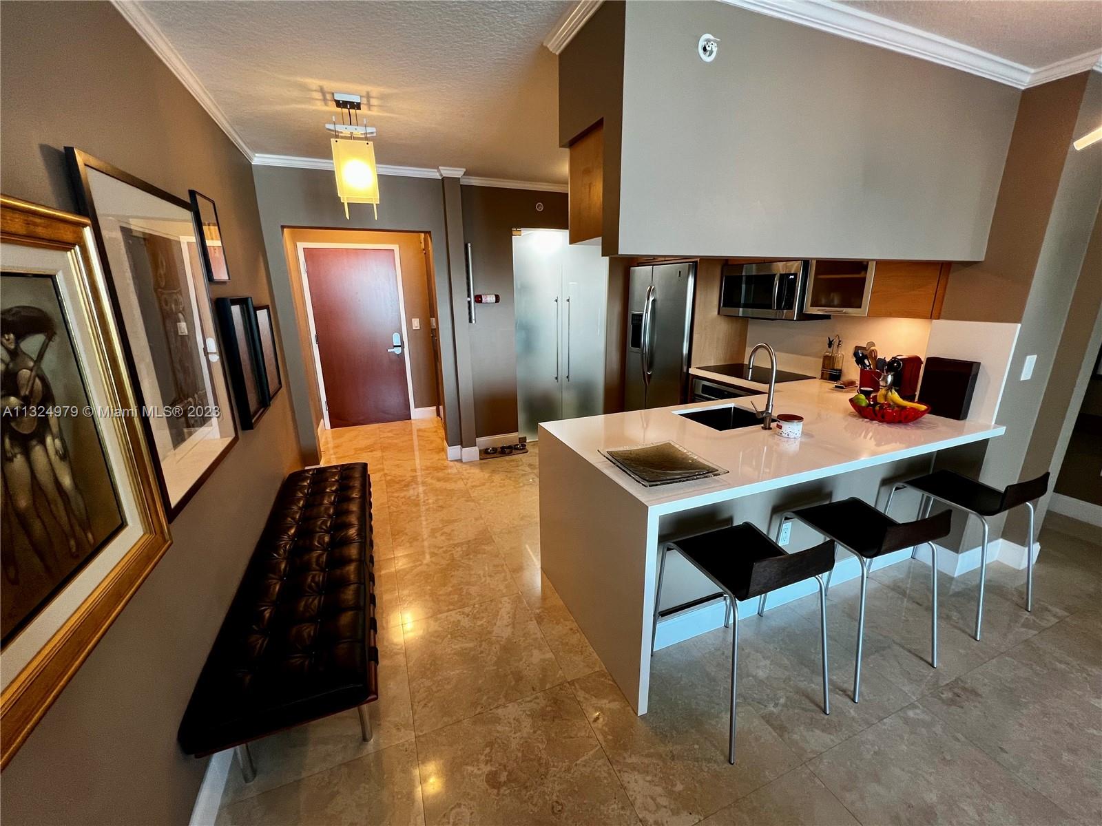 Spectacular view of the River and Bay! Corner unit filled with natural light, beautiful marble floors, many upgrades, open kitchen, spacious master bath, custom doors... Must see to appreciate! Furniture can be included in sale at no additional cost! 3 storages cages included. Waterfront building with boat dock for pick up & drop off, kayak, stand up and other water activities. Very well managed building with great amenities. Pets OK. OK to rent, minimum period 90 days. Fantastic investment and phenomenal location. Maintenance fee total $979.06/monthly (BOR North $652.80 + BOR Master $326.26)
