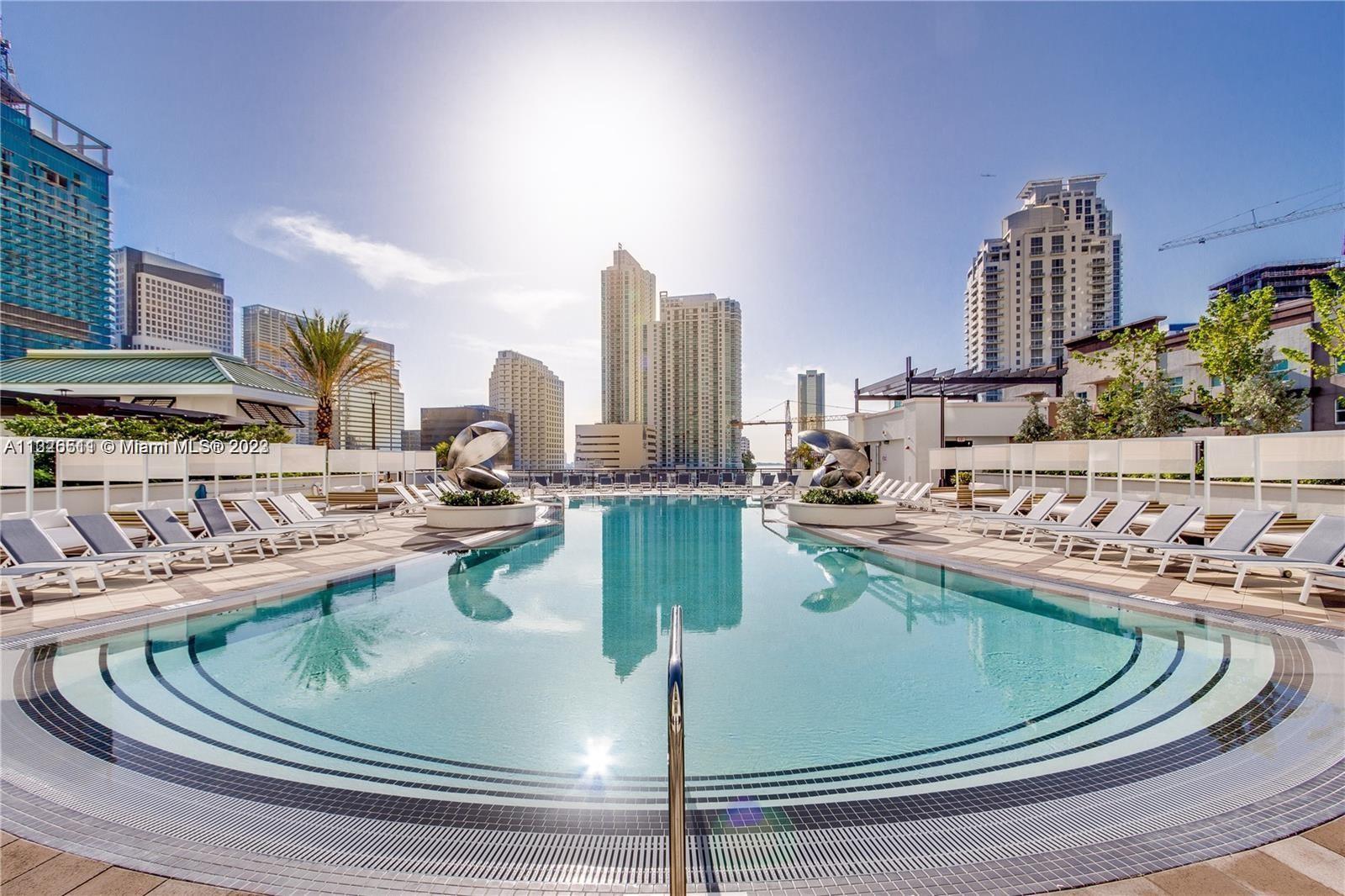 This 2 bed 2 bath has a very spacious, split floor plan and comes with 2 PARKING SPACES, stunning bay, river and sunset views in the heart of Brickell. Rectified Porcelain Tile & Wood Floors, Modern Open Kitchen. 2 walk-in closets with large storage closet/separate laundry room with more space for storage. Access to Mary Brickell Village with over 35 restaurants, LA Fitness, Publix supermarket all just an elevator ride away. Resort Style Amenities, Infinity Pool, Cabanas, Pavilion with BBQ Grills, Fitness Center, Billiards Room, Children's Play Ground, Dog Run area. Also conveniently located One block away from Brickell City Center. Cross the street and take the metro rail straight to Miami International Airport, University of Miami, or the Hospital District at Civic Center.Request a video