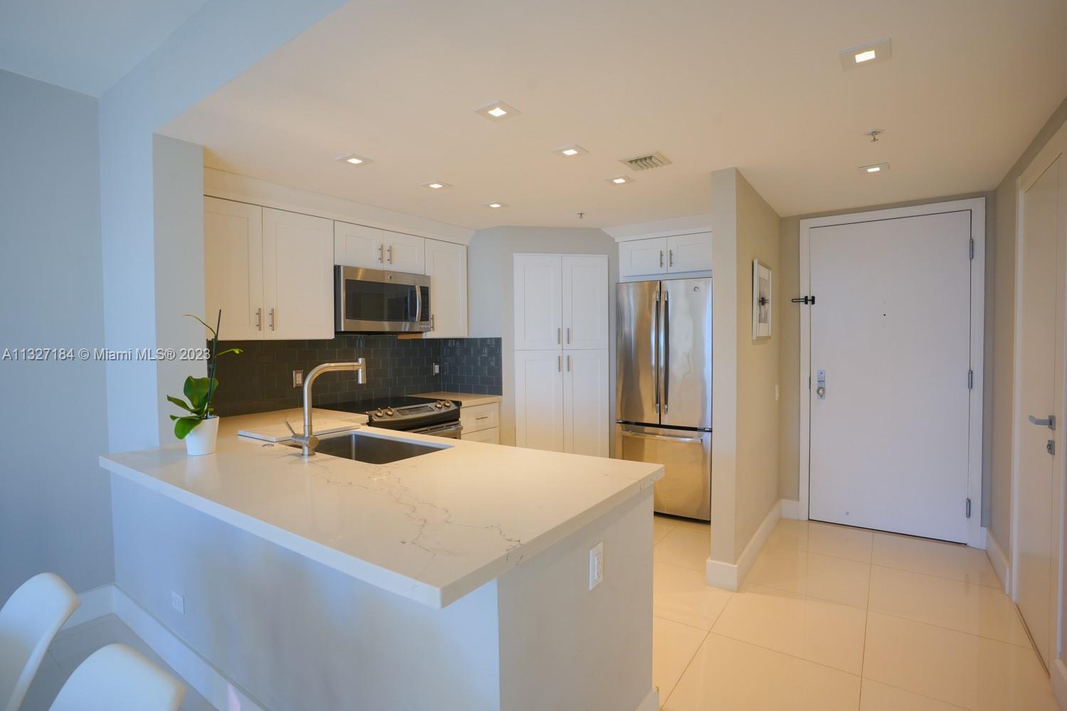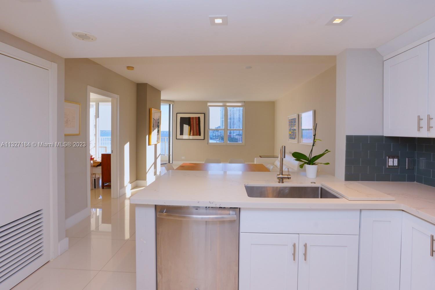 DIRECT & UNOBSTRUCTED WATER VIEWS! Best line for 1 bed/1,5 baths apartment. Fully renovated, new porcelain tiles floors, very luminous, open kitchen with stainless steal appliances, big balcony, large cabinetry closets. Washer/Dryer in unit. Great amenities include 24/7 security, valet parking, pool, 2 story gym, indoor squash courts, billiards, kids playroom. You can walk around the island, as well as to the best restaurants and shopping center. Guard gated Brickell Key Island. Furniture is negociable