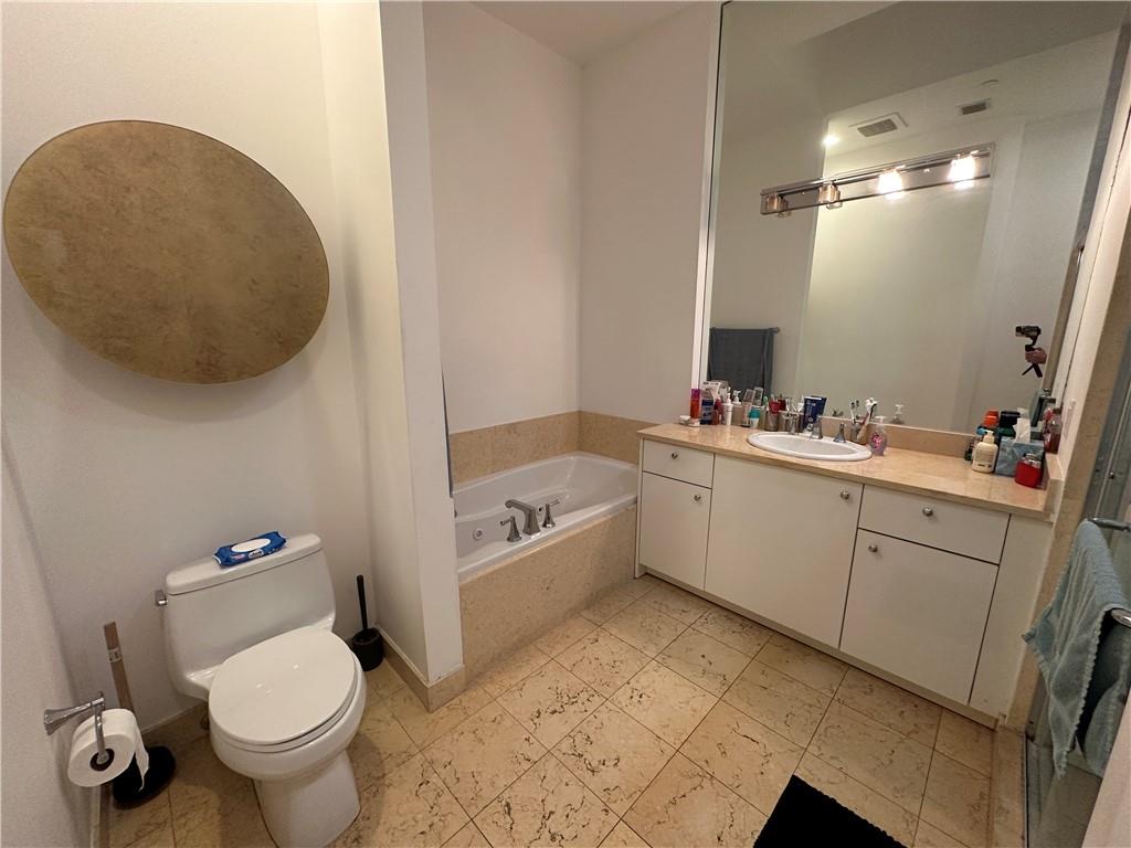 This one bedroom condo in Turnberry Village in Aventura is a luxurious and modern unit, perfect for those looking for a comfortable and elegant home in a prime location. With a spacious layout and high-end finishes, this condo boasts a sleek and stylish design that is sure to impress. The bedroom is large and has enough room for a king sized bed, ample closet space, and plenty of natural light. The living room is perfect for relaxing or entertaining, and opens up to a private balcony with stunning views of the lush landscaping. The kitchen is fully equipped with top-of-the-line appliances and plenty of counter space, making it a chef's dream. The bathroom is beautifully designed and features a large shower, separate jetted tub and modern fixtures. Tenant occupied until 12/26/23.
