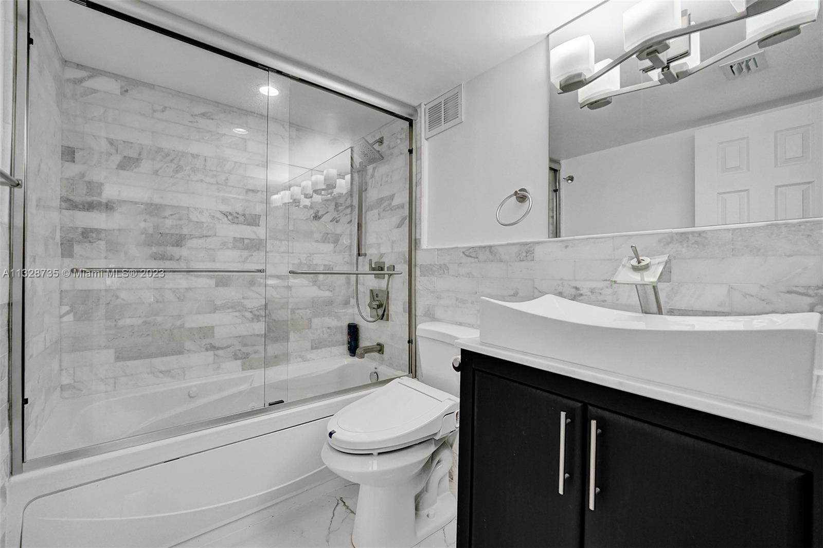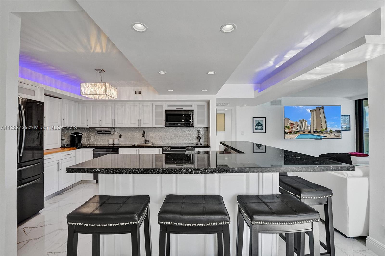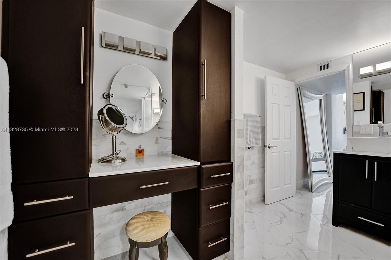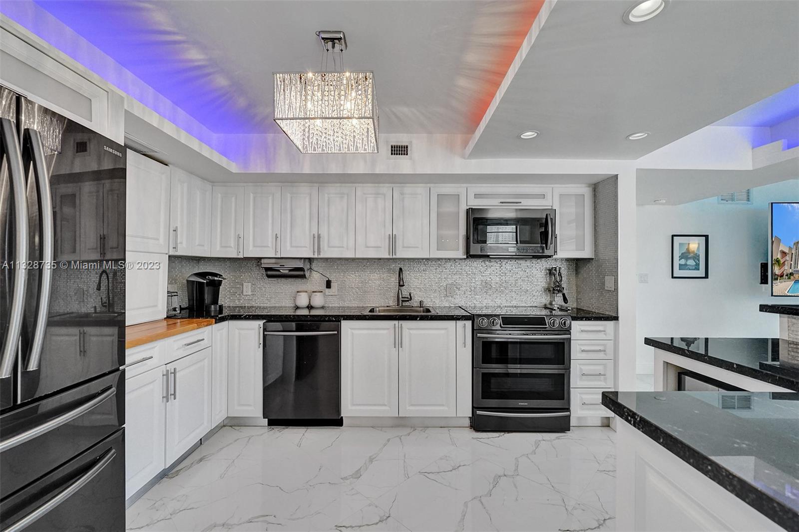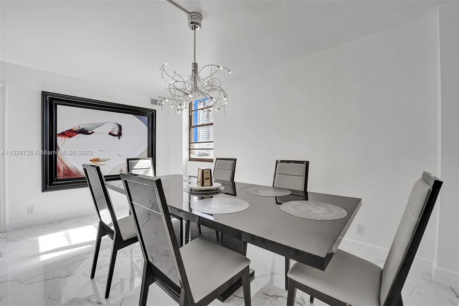 Welcome to apartment 5k... Upon entering the home, you are greeted by the spacious dining area, currently configured with a table that comfortably seats six. Adjacent is the chef’s kitchen, outfitted with top-of-the-line Samsung appliances. Move then into the sun-flooded living area that looks out on to your private balcony, which is accessible from both bedrooms as well. The split bedroom layout allows for privacy amongst occupants and guests. The primary suite boasts a spacious walk-in closet with custom shelving, as well as a stunning en-suite marble bathroom with dual sinks and a gorgeous vanity. Marble floors, custom lighting, remote control electric blinds, and brand-new appliances are only some of the magnificent updates this gut renovated home has to offer.